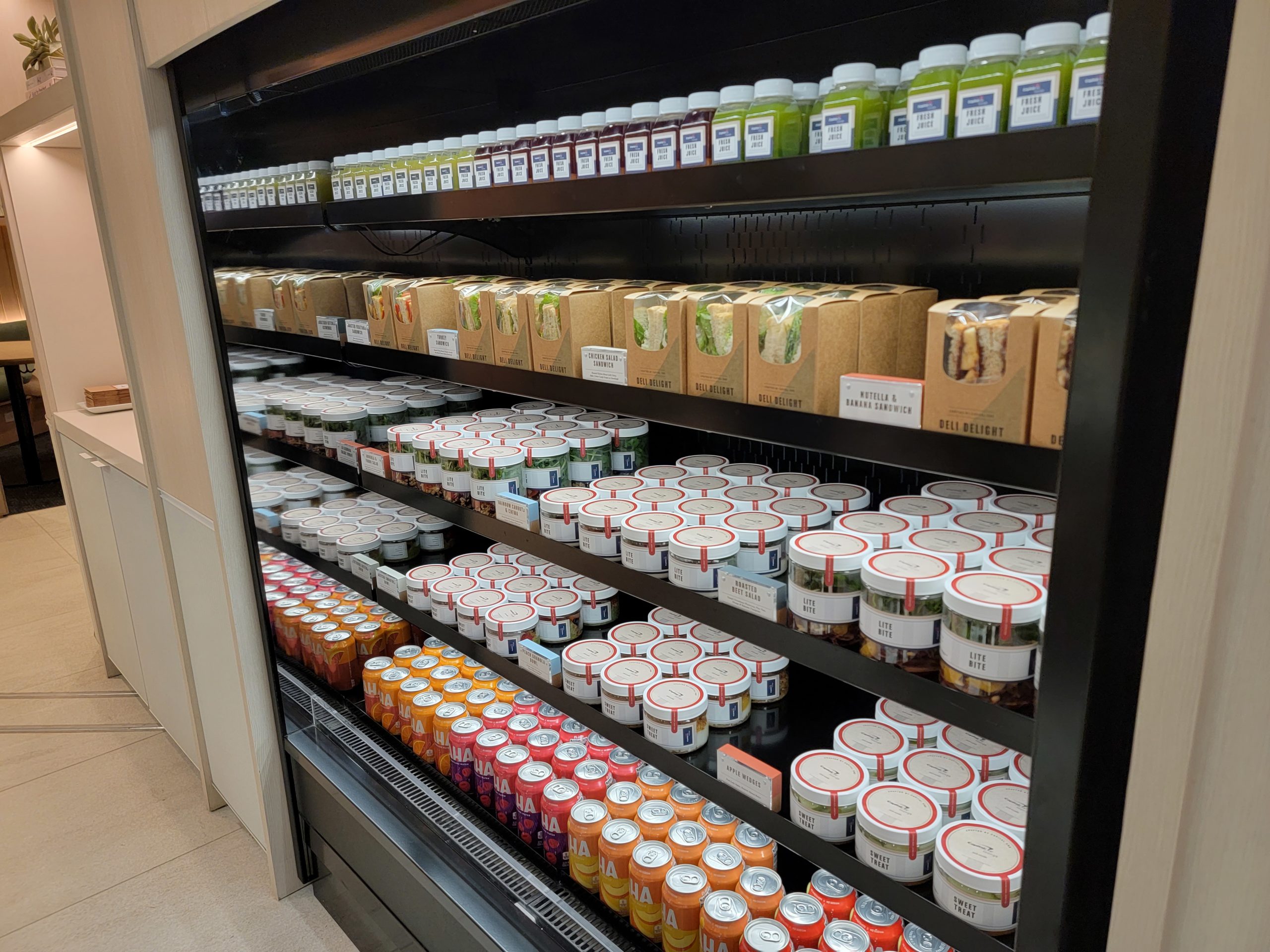 And the food is really quite excellent. Plus, they offer a ‘grab and go’ concept with refrigerators near the entrance so you can visit and take something with you to your flight.