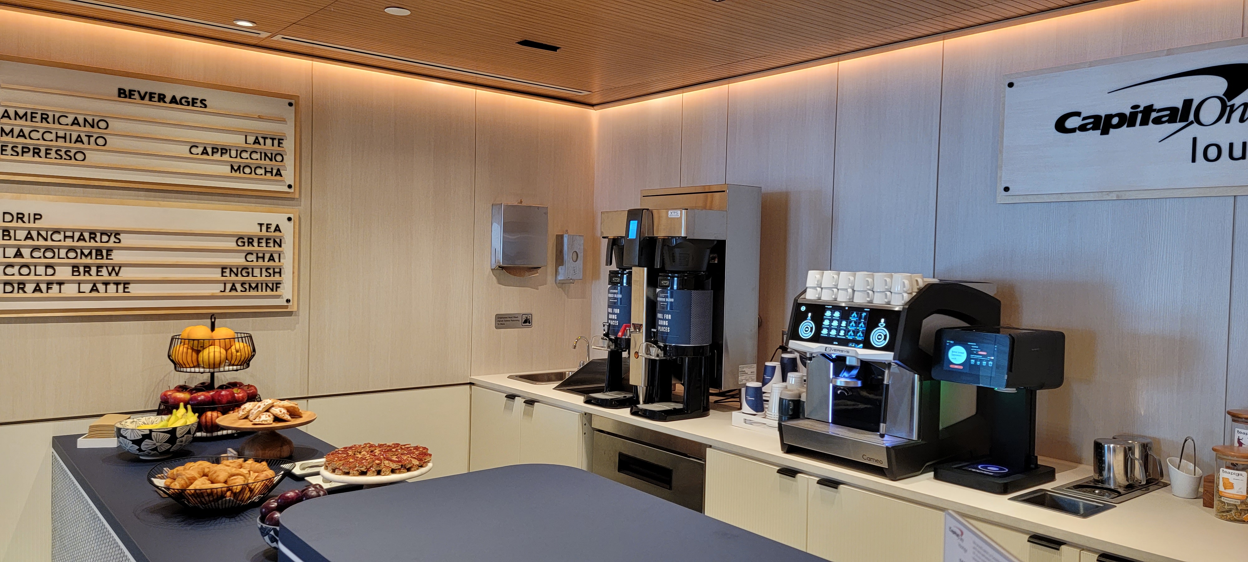 Capital One currently has lounges at Dallas – Fort Worth; Washington Dulles; Denver; and Las Vegas. They also have a restaurant concept, Capital One Landing, at Washington’s National airport and another one announced for New York LaGuardia.