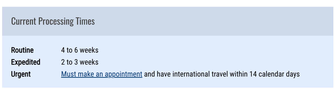 Check current passport processing times