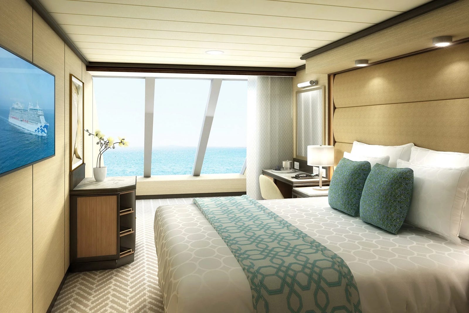 A handful of oceanview cabins on Sky Princess and Enchanted Princess have unusual slanted windows. PRINCESS CRUISES