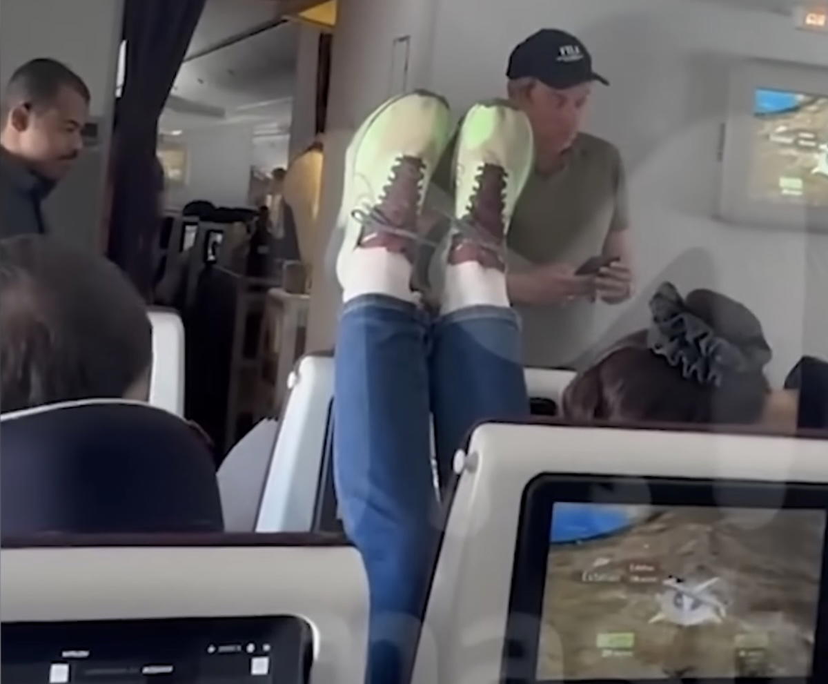 I’ve seen a lot of situations of passengers putting their feet in places where they don’t belong on planes, but I’ve never seen anything quite like this.