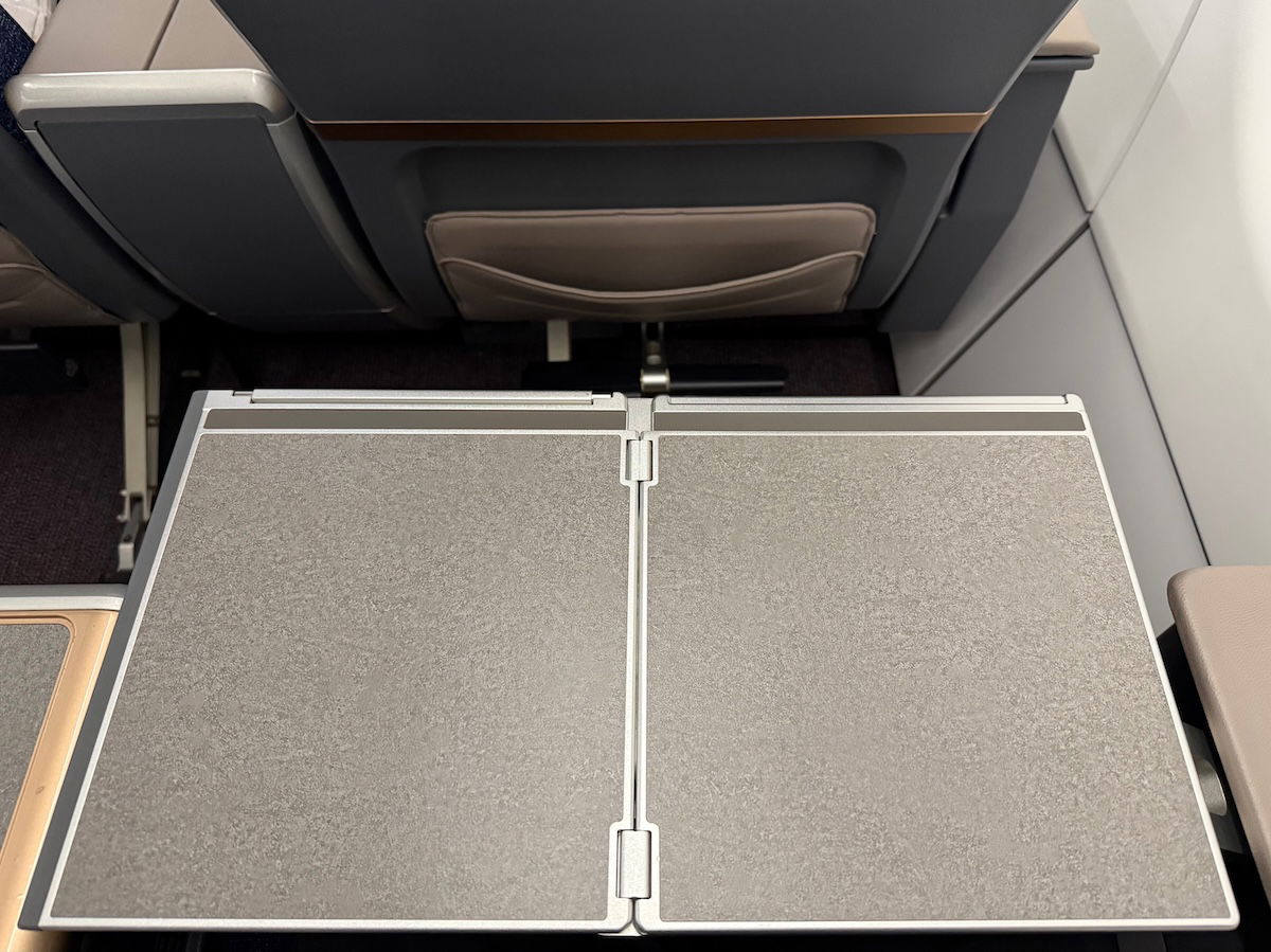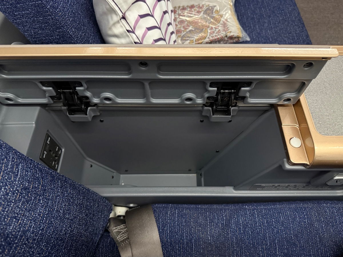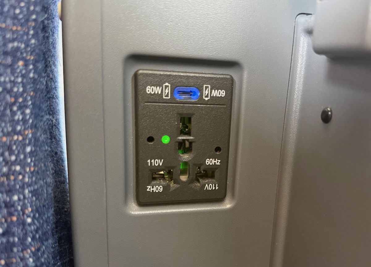 The center armrest can then be raised, to give access to an exposed storage area, as well as the power outlets. Charging options include AC power outlets as well as USB-A outlets. Minor point — it’s interesting that even as airlines introduce new cabins, they’re still going with USB-A over USB-C in some cases (it seems like both should be included at this point).