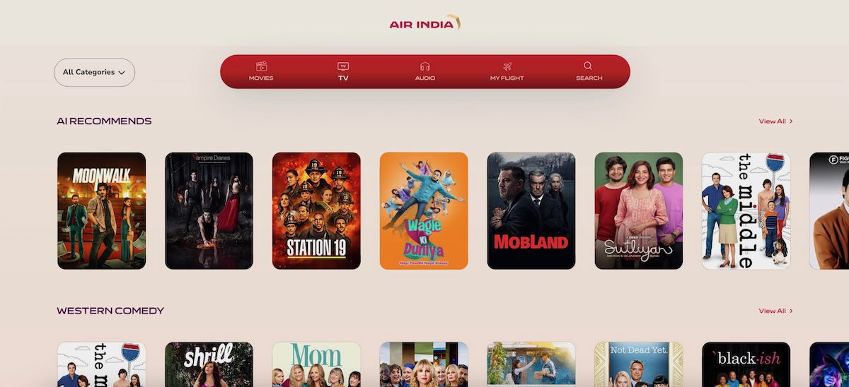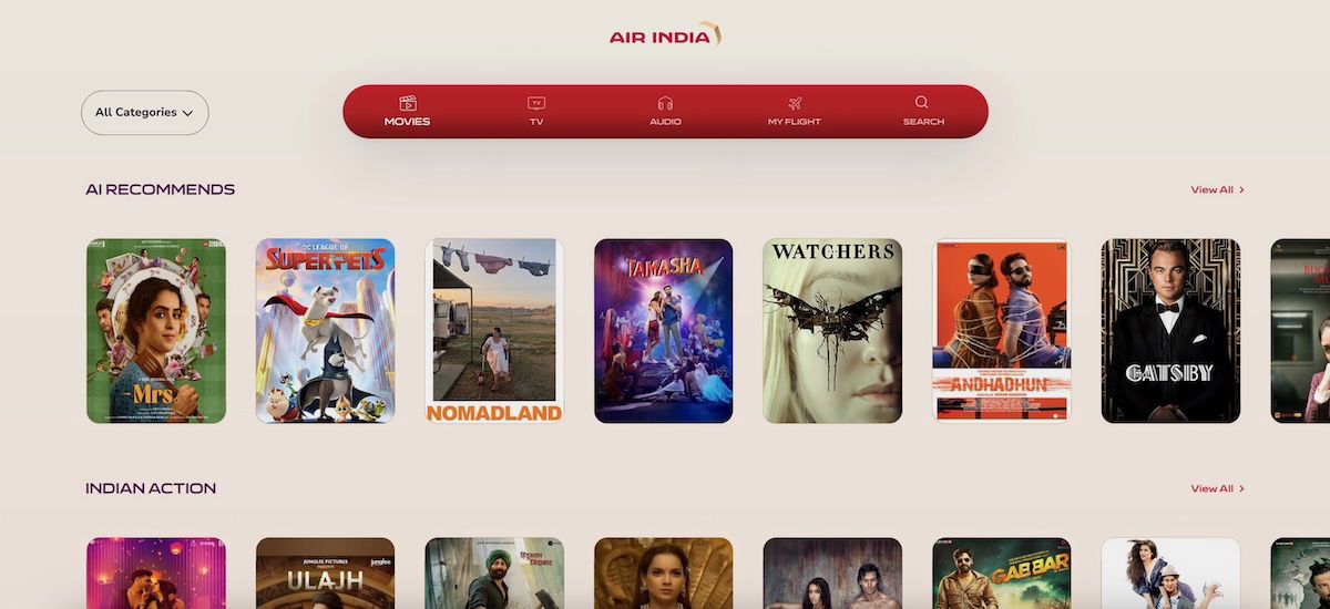 Air India A320neo business class entertainment