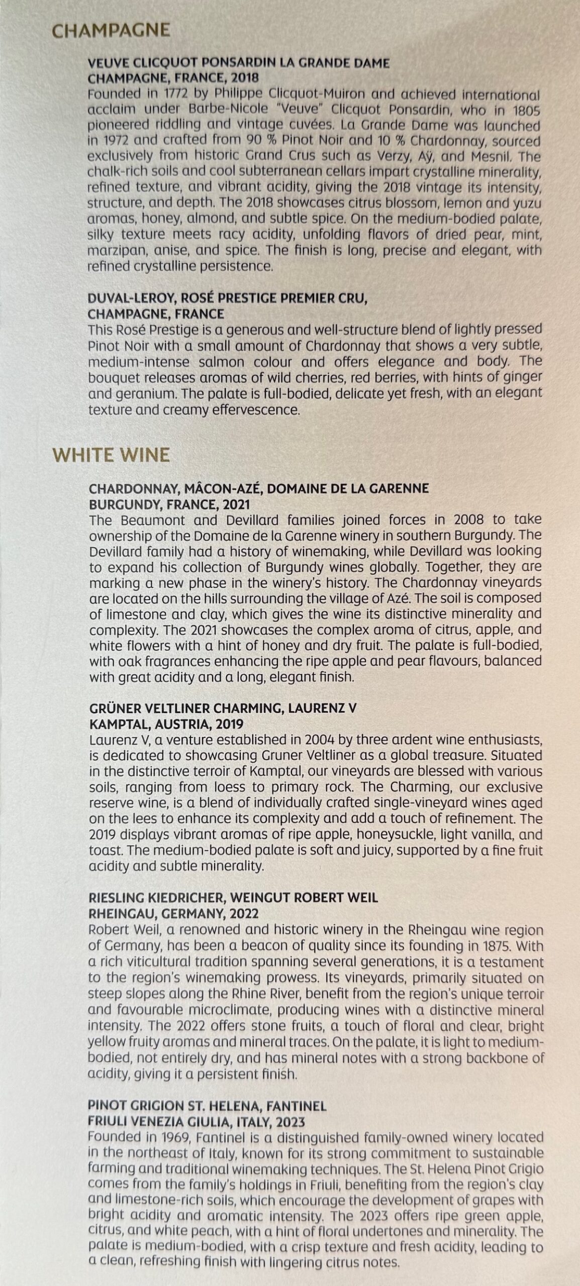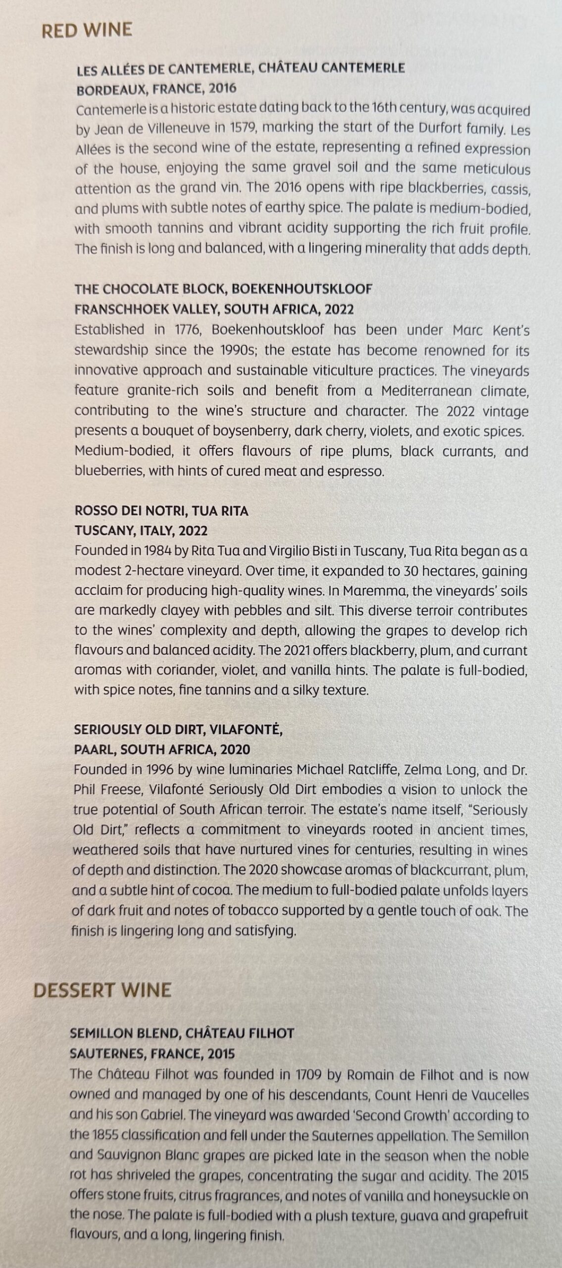 For those curious, you can find the wine list for Etihad’s The Residence Lounge below.