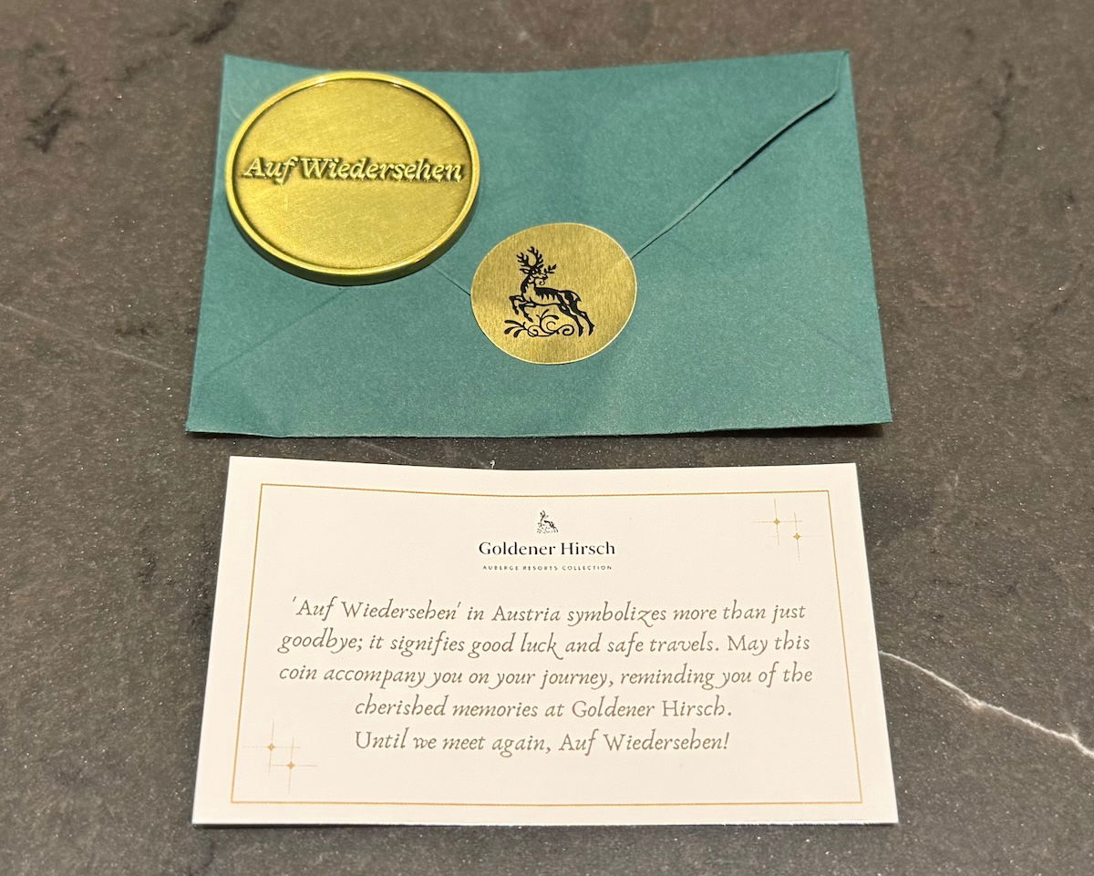 Another nice touch was that on departure we were each given a little gift, with an “Auf Wiedersehen” coin.