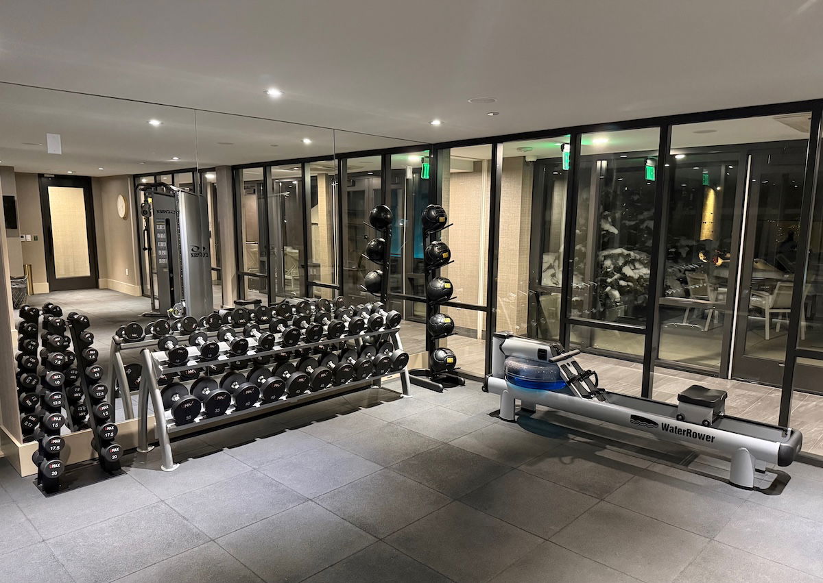 The hotel then has a 24/7 gym, which is on the basic side, but I guess we’re talking about a boutique ski resort, so that’s not too surprising. I appreciated the range of free weights, and I know some others will like the Peloton bikes.
