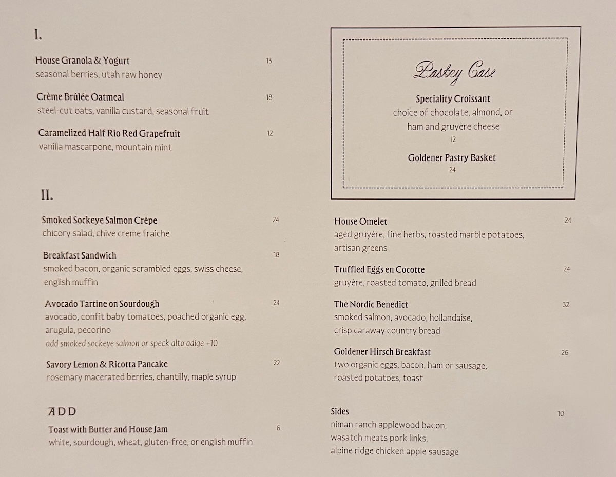 Goldener Hirsch Deer Valley has three(ish) food & beverage outlets, as follows: