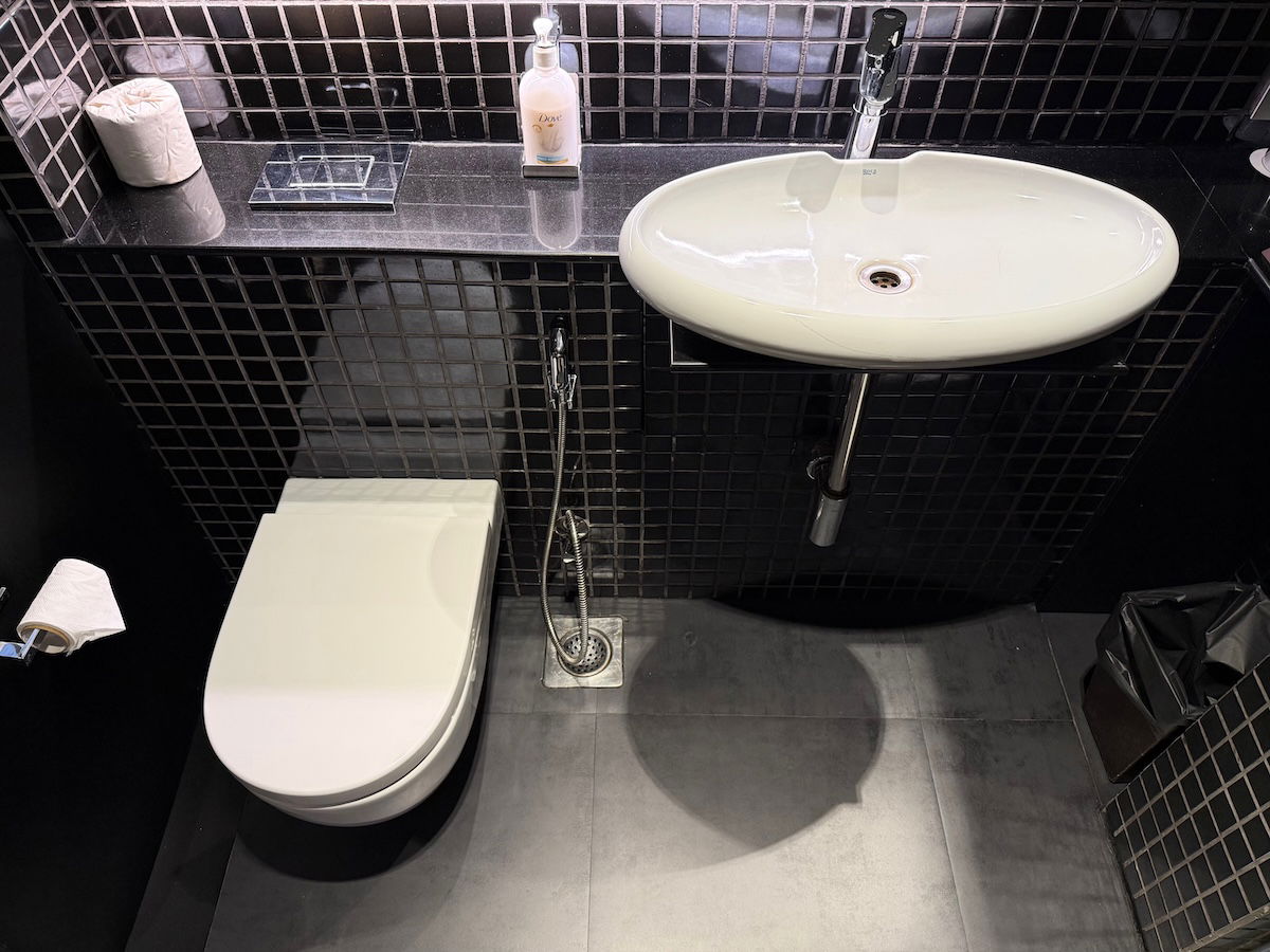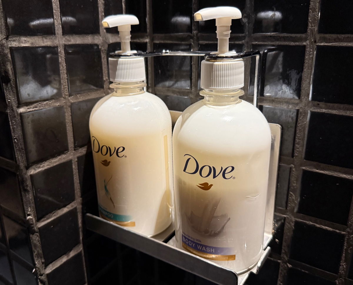The bathroom was pretty basic, and had a sink, a toilet, and a walk-in shower, with Dove toiletries in reusable containers. There wasn’t much separation between the shower and the rest of the room, so when I showered, the rest of the bathroom got very wet.