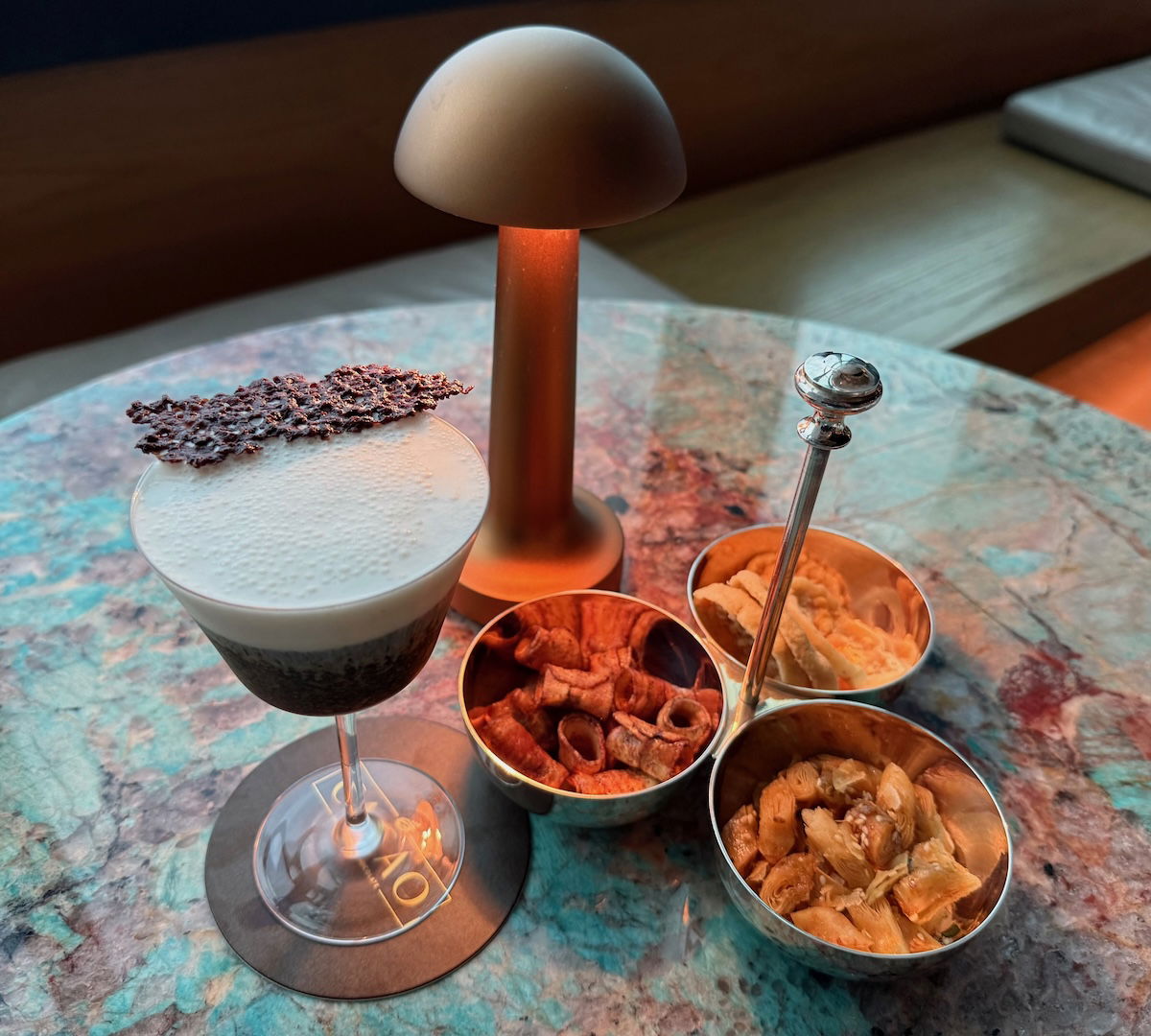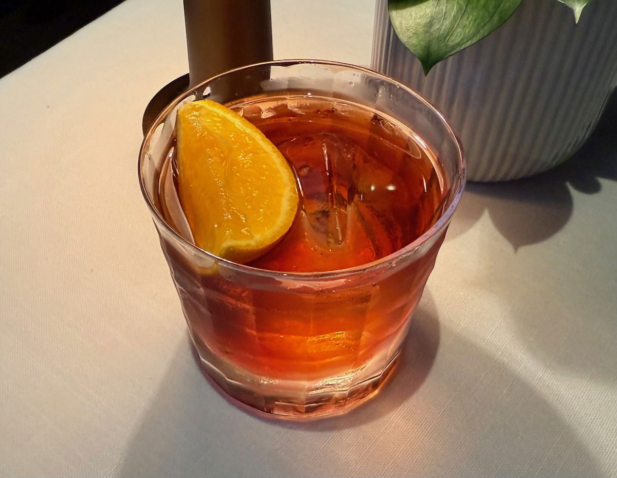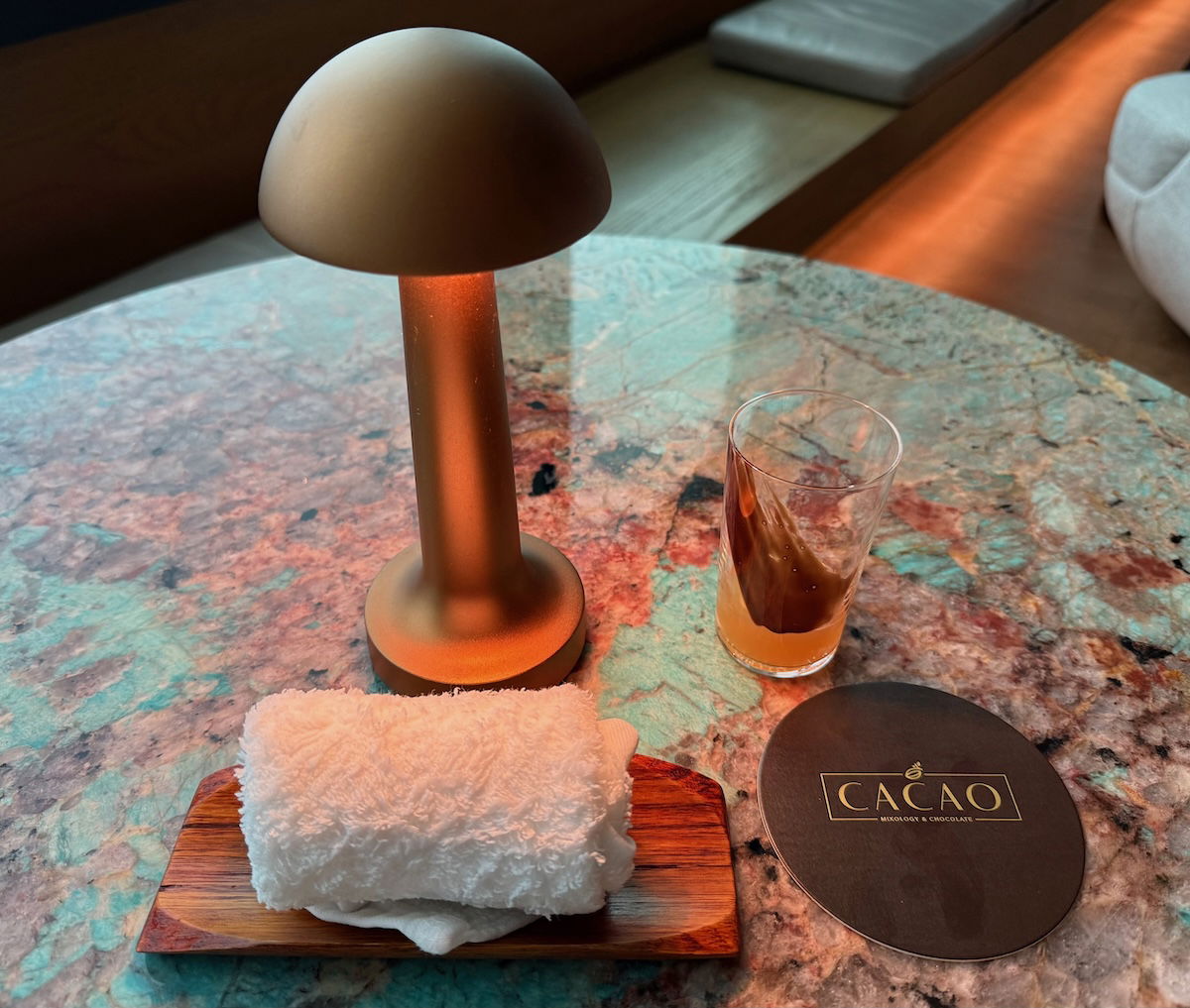 Upon sitting down, I was offered a cold towel, plus a cacao negroni welcome drink.