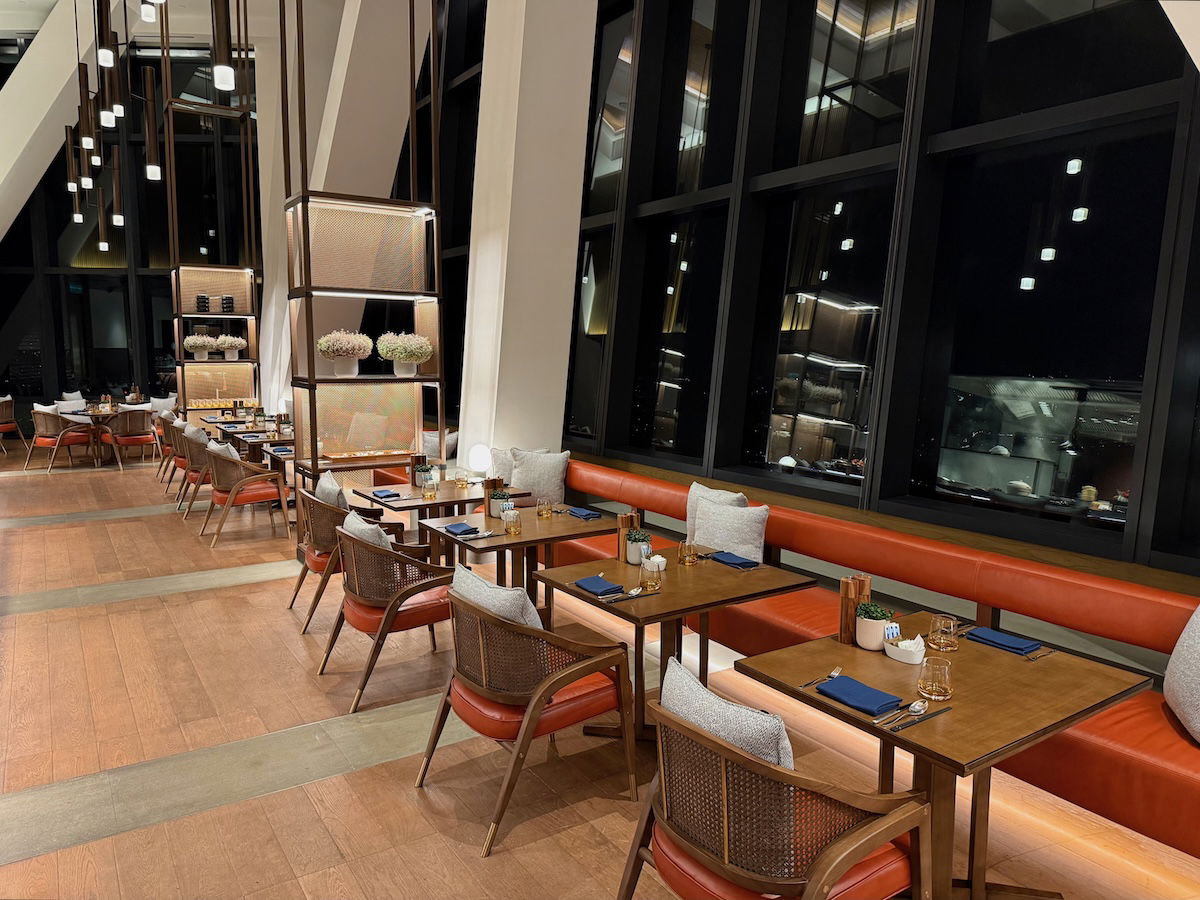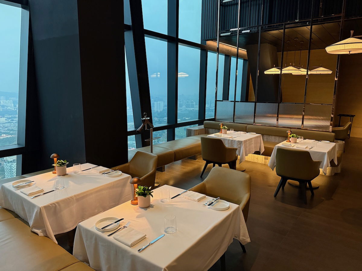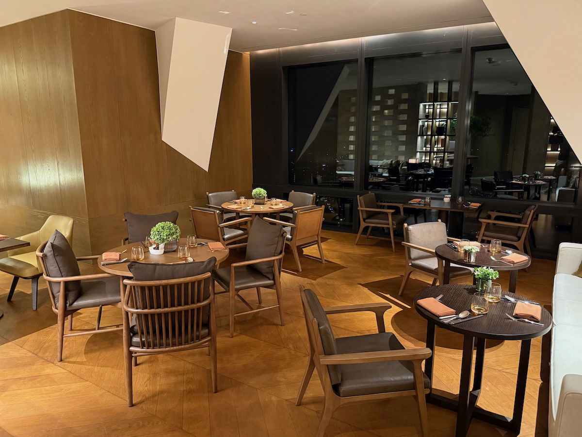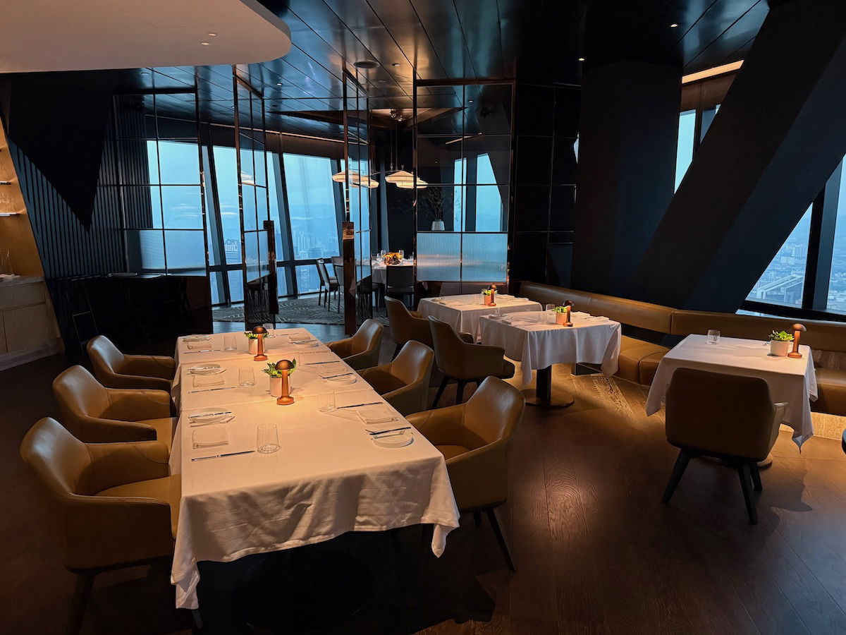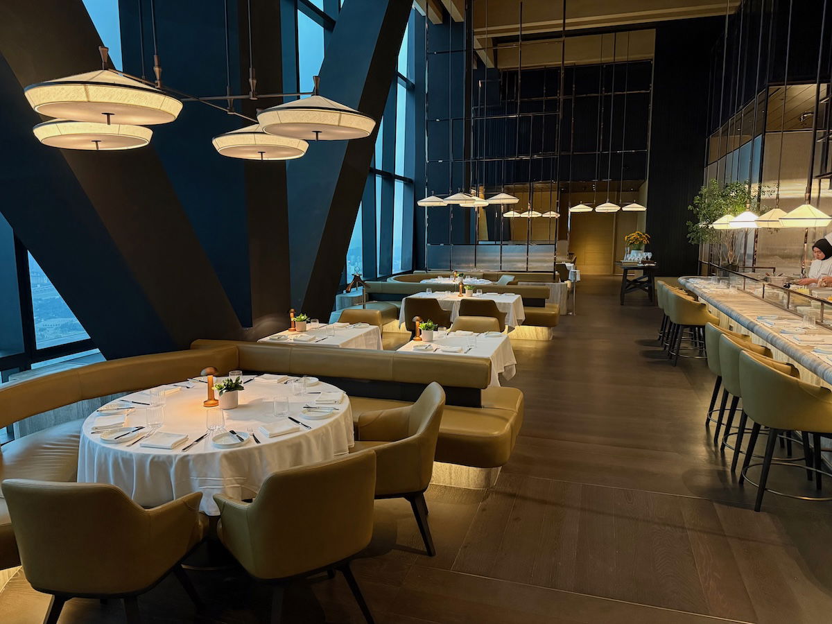 All of the Park Hyatt Kuala Lumpur’s food & beverage outlets are located on the 75th floor, the same level as the lobby. So while you’re still really high up, you’re 30+ levels below the top rooms at the hotel. The hotel has three main dining venues: