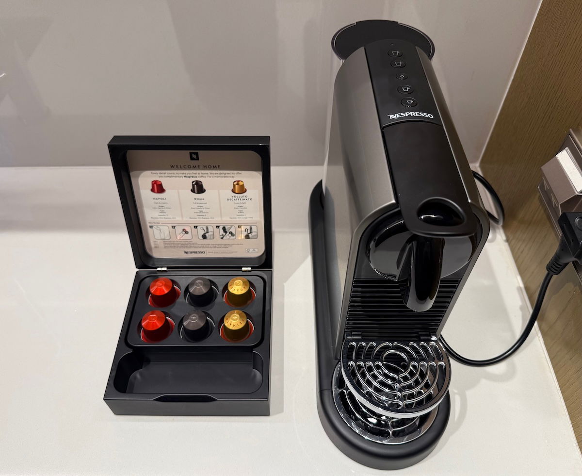 There was also a kitchenette off to the side of the bar, with a large fridge, a sink, an oven, etc. This is also where the Nespresso coffee machine was located, plus the minibar drinks and snacks for purchase.