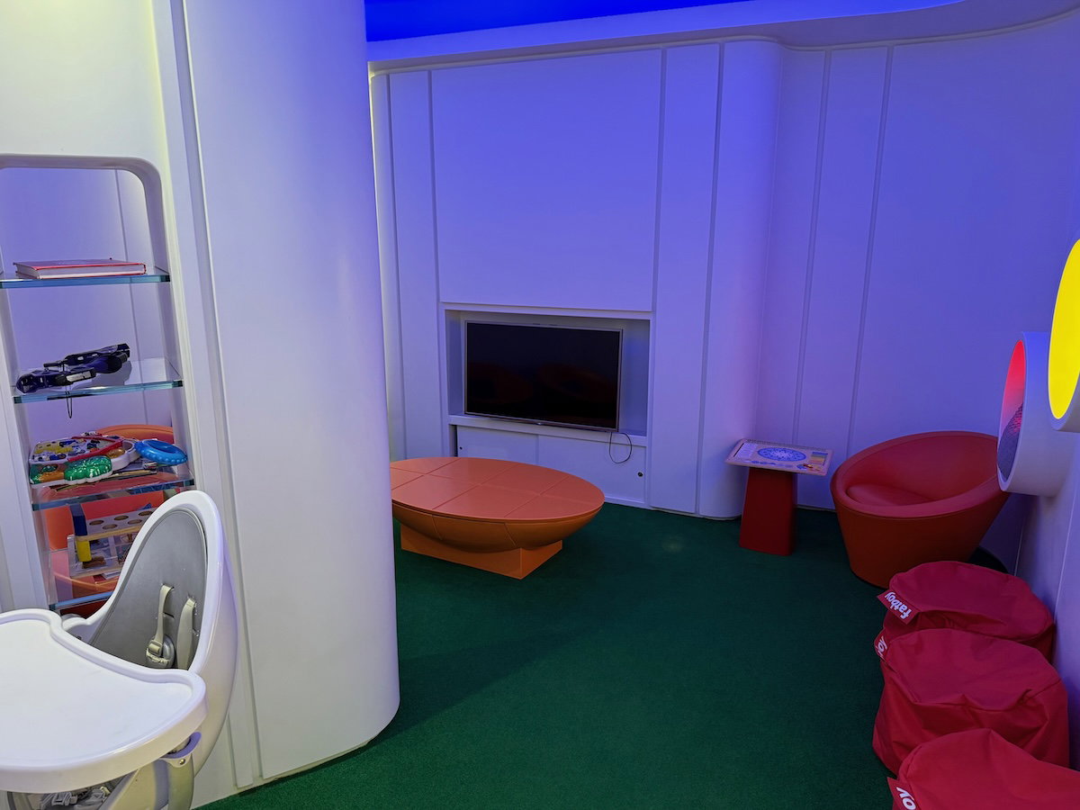 The lounge covers a space of around 620 square meters (6,700 square feet), so it’s quite a good size. The main part of the lounge consists of rows of seats facing one another, with some TVs along the side of the room.