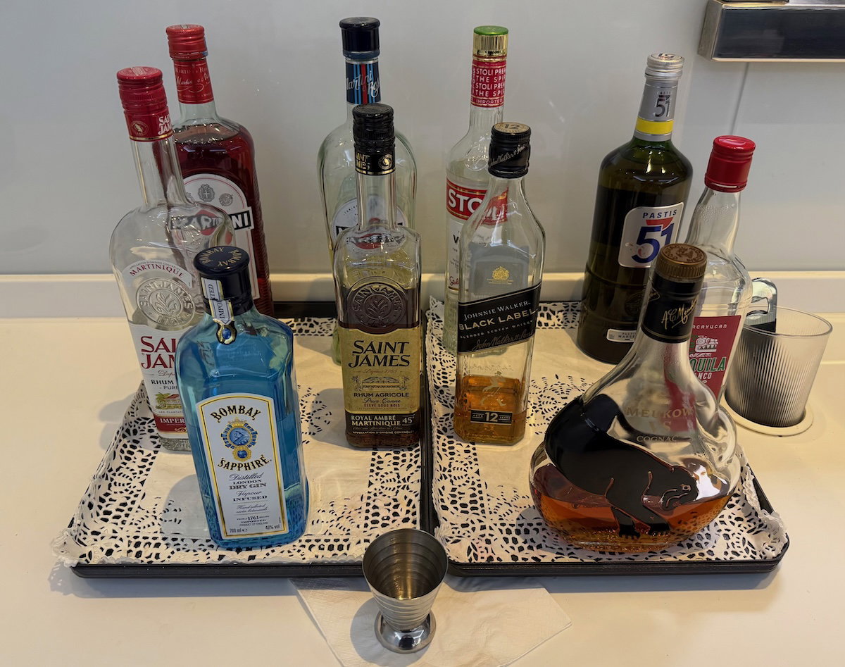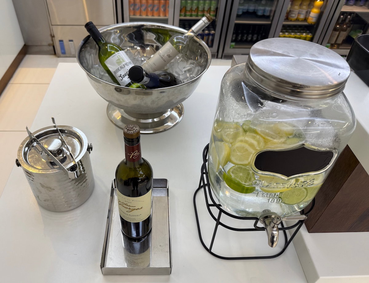 When it comes to drinks, there was a selection of self-serve liquor, wine, bottled soft drinks, juice, water, a coffee machine, and tea.