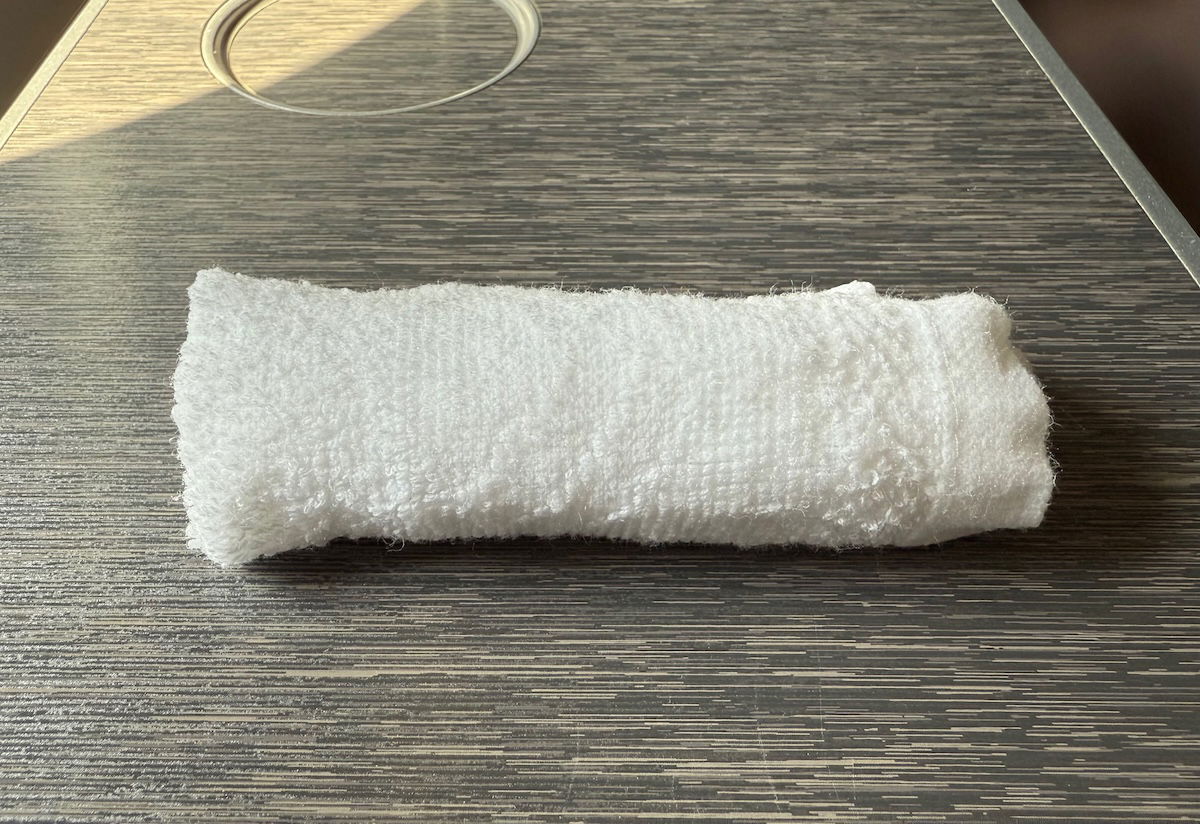 Later during the boarding process, warm towels were distributed.