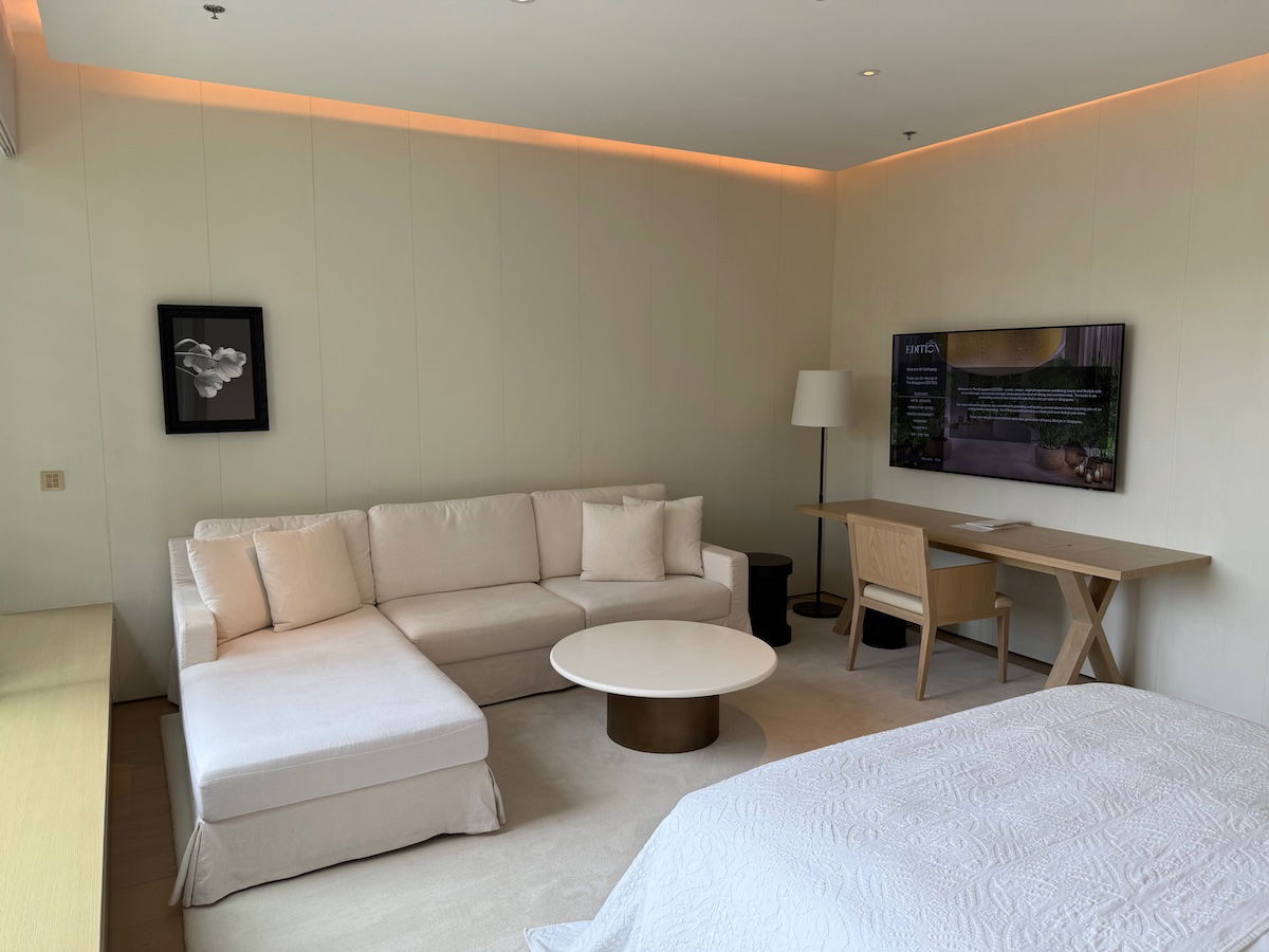 The deluxe king larger guest rooms at the Singapore EDITION are marketed as being 516-560 square feet (48-52 square meters), so they’re spacious. That being said, I found the design and decor to be pared down, and quite bland.