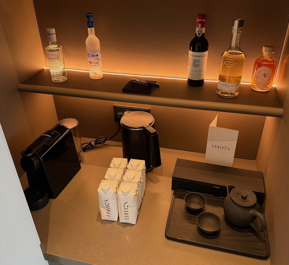 The minibar was also right by the entrance, and had a Nespresso coffee machine, a tea selection and kettle, and a variety of drinks and snacks for purchase.