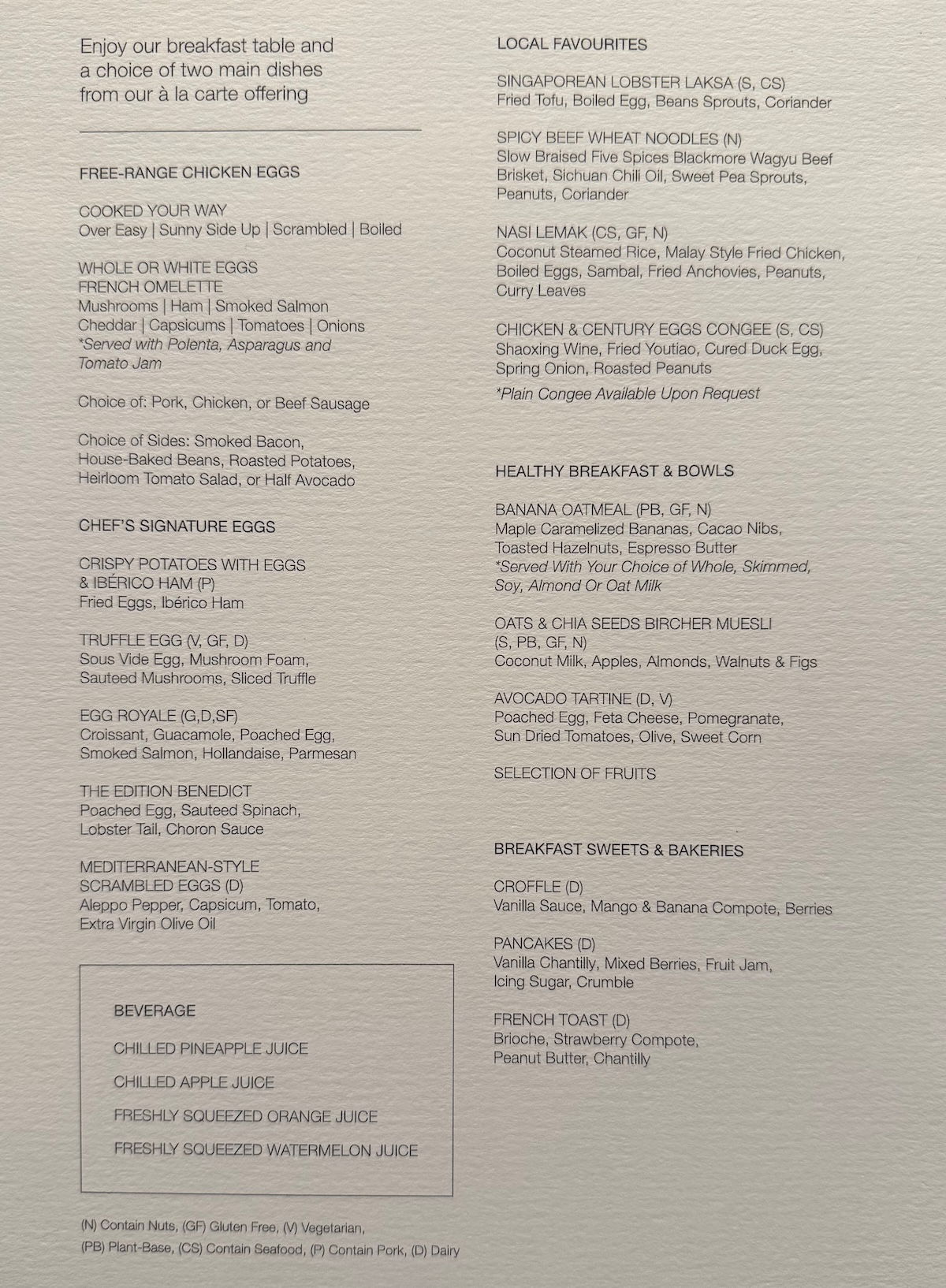 You can find the breakfast menu below.