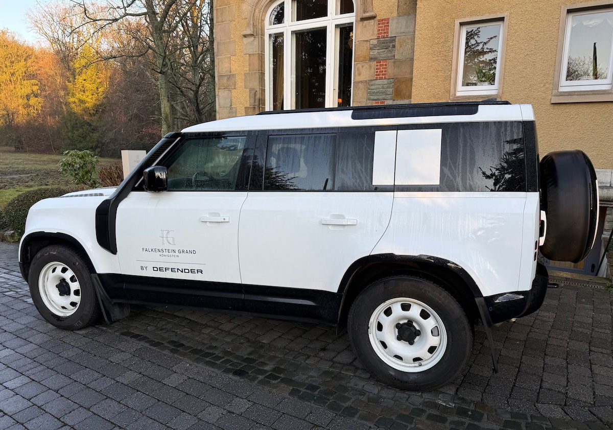 The hotel’s house car is generally parked outside, and it’s a Land Rover Defender. Meanwhile the sister hotel has a Range Rover, so those cars can shuttle guests between the properties.