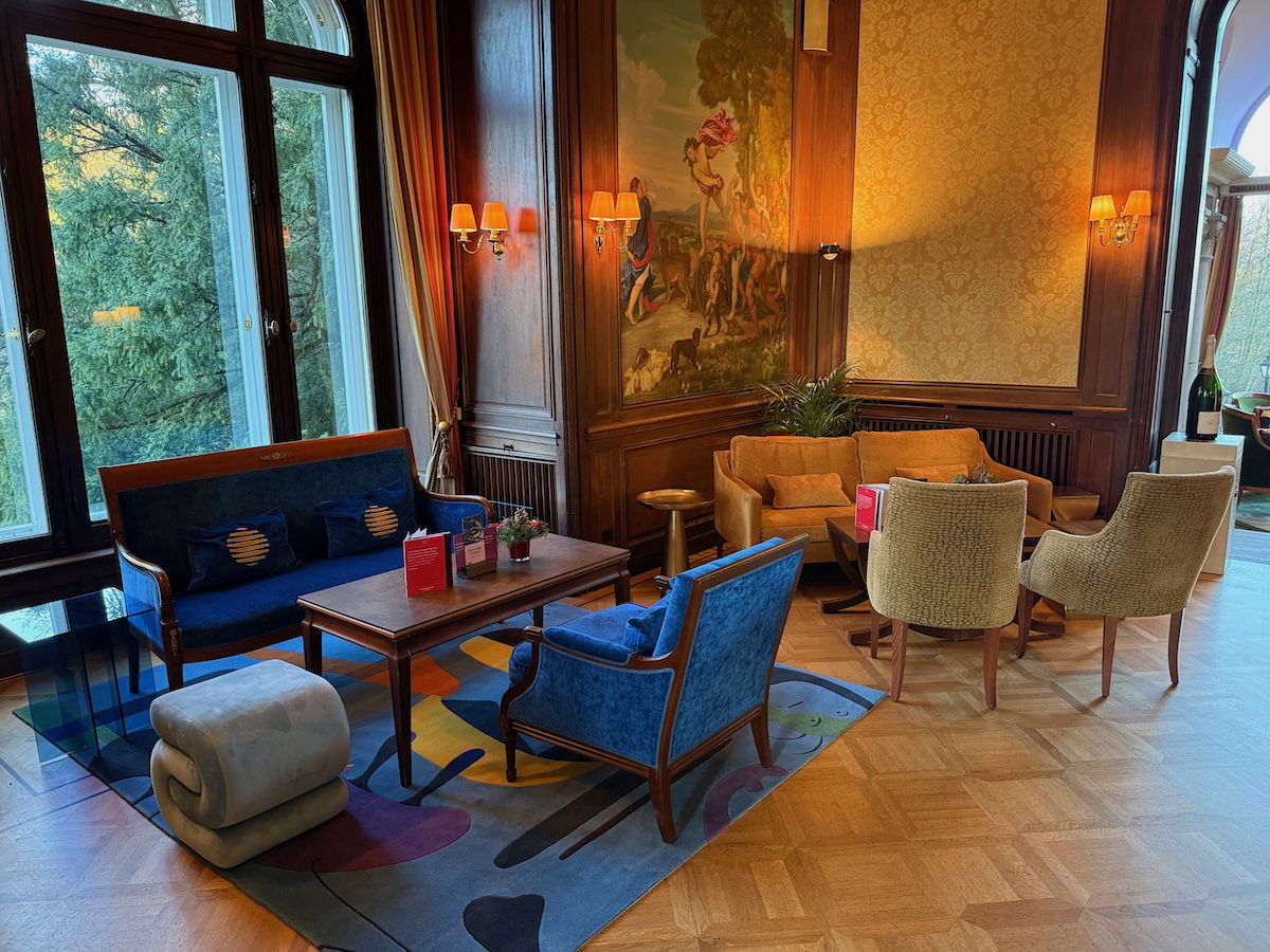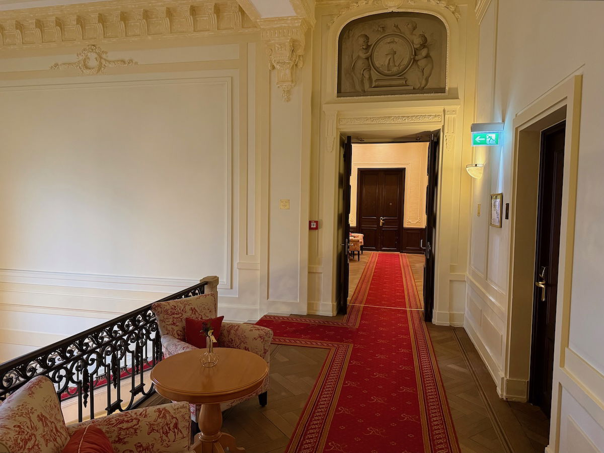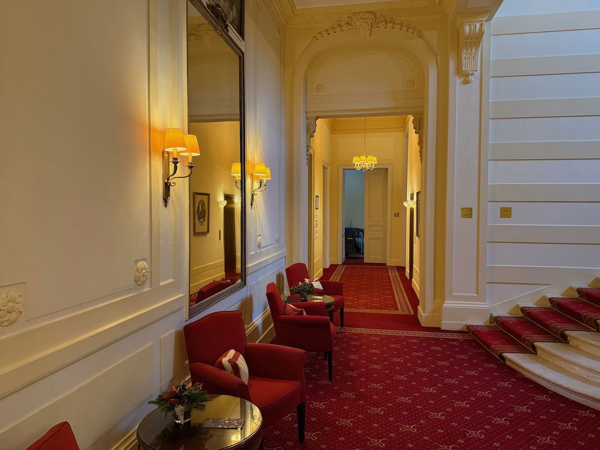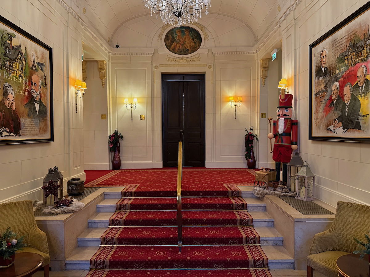 I was impressed by Villa Rothschild the second we walked in — what an incredible building, and especially when you consider the price point, this is a unique experience! As you enter, there’s first a small staircase, with lots of cool little details, and also plenty of seating.
