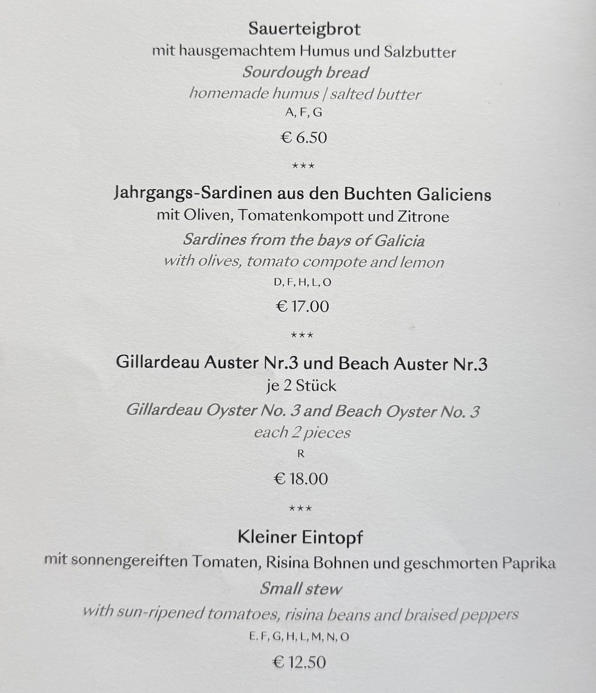 Villa Rothschild Tizian’s Bar menu