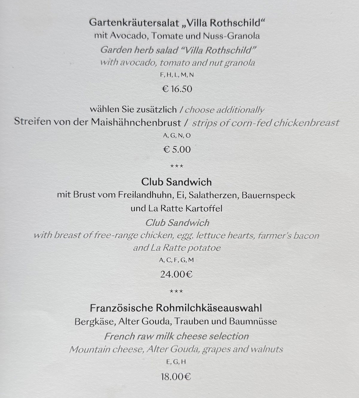 Villa Rothschild breakfast menu