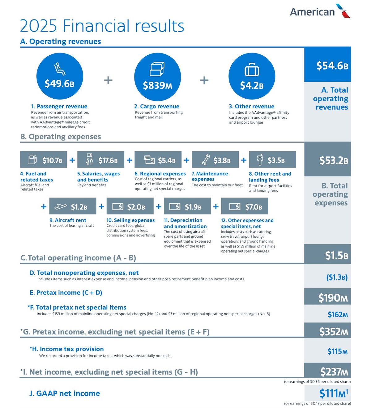 It’s kind of amazing how American still sort of lacks a narrative for fixing things. Regarding the 2025 results, here’s what American CEO Robert Isom had to say: