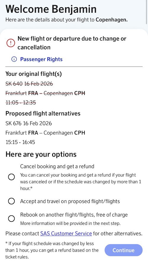 After looking at alternatives on other airlines and deciding that the flight didn’t work for me, I just booked a ticket on Lufthansa with points, since I valued getting to Copenhagen earlier. However, at that point SAS claimed that I wasn’t eligible for a refund, since I agreed to the rebooking. That’s kind of frustrating, when you consider the consider the big picture, in my opinion.