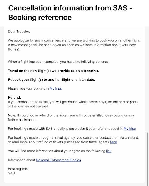 She explained that SAS had no further obligation, since I accepted the rebooking, and therefore a cancellation was no longer possible. She insisted there was nothing else she could do. Okay, that’s super annoying — I suppose technically she’s correct that I accepted the alternative, though this just strikes me as incredibly customer unfriendly.