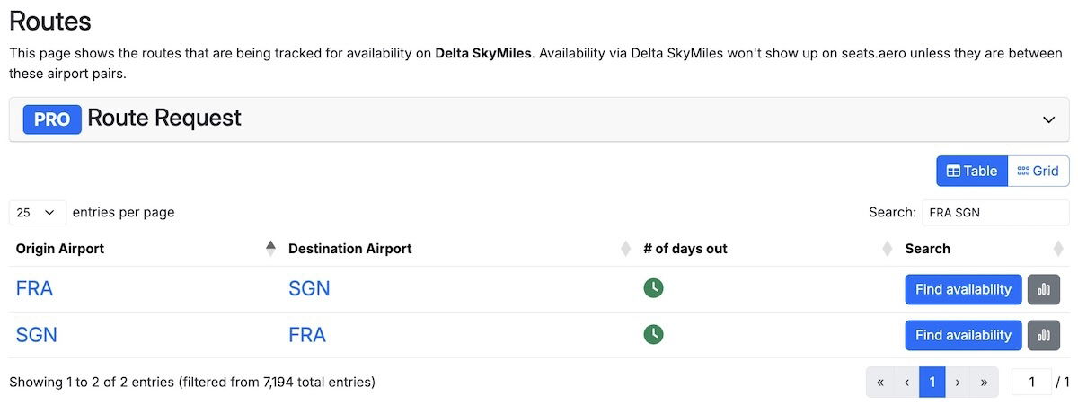 As an example of the versatility of this search tool, let’s say you wanted to search Vietnam Airlines award availability between Frankfurt and Ho Chi Minh City. Vietnam Airlines is in the SkyTeam alliance, and Delta SkyMiles is one of the programs available through Seats.aero.