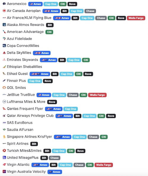 Seats.aero currently searches award space through roughly a couple of dozen frequent flyer programs, most of which partner with major transferable points currencies. These programs include the following: