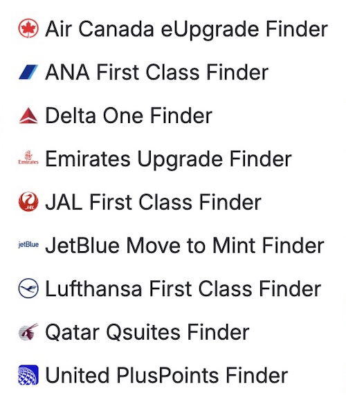 One of my favorite things about Seats.aero is that if you go to the “Tools” section, you’ll see several search options that are specific to certain products. For example, there’s an All Nippon Airways first class finder, Japan Airlines first class finder, Lufthansa first class finder, Qatar Airways business class finder, etc.