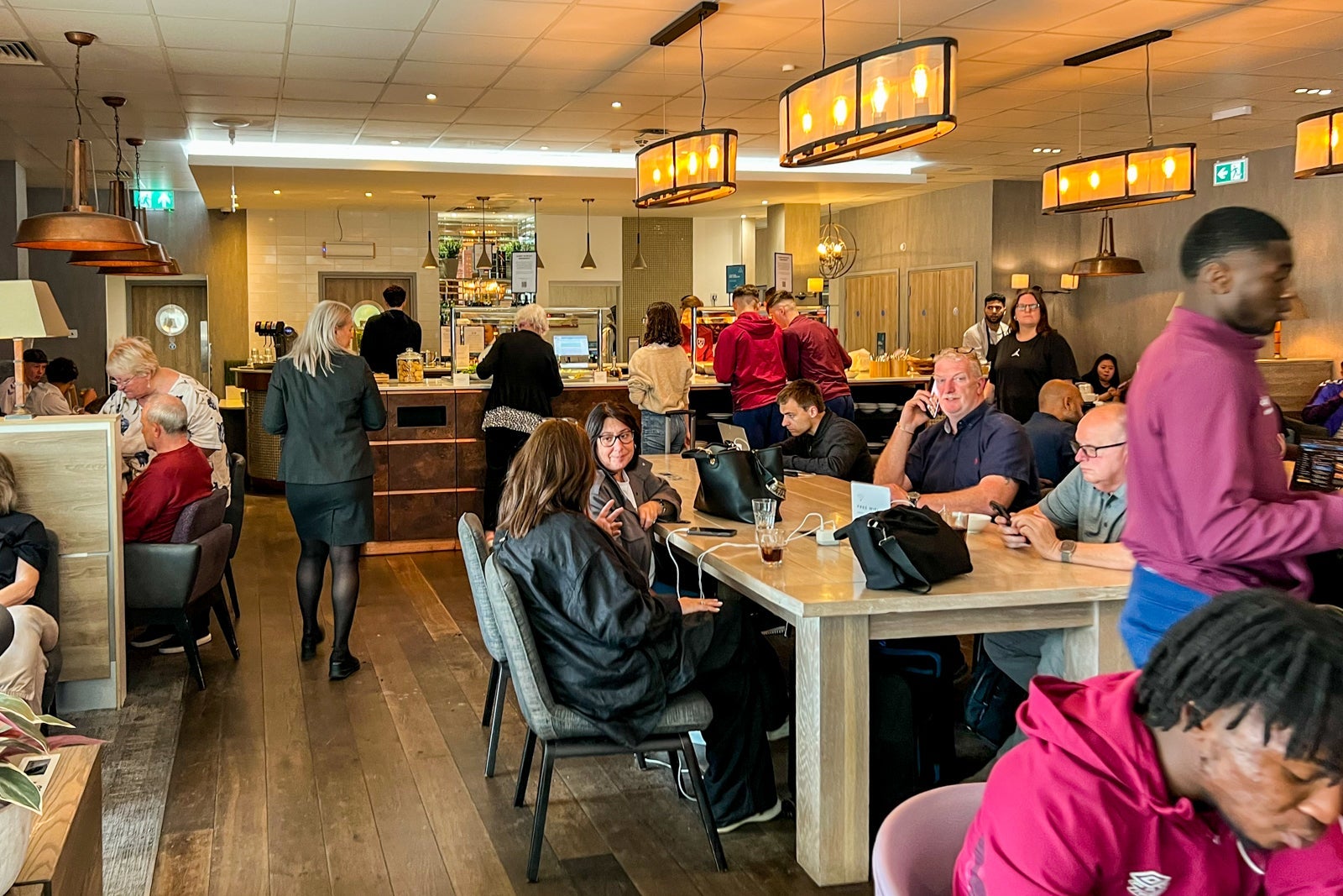 There’s a mixture of comfortable booth-style seating and other tables, with charging ports readily accessible.