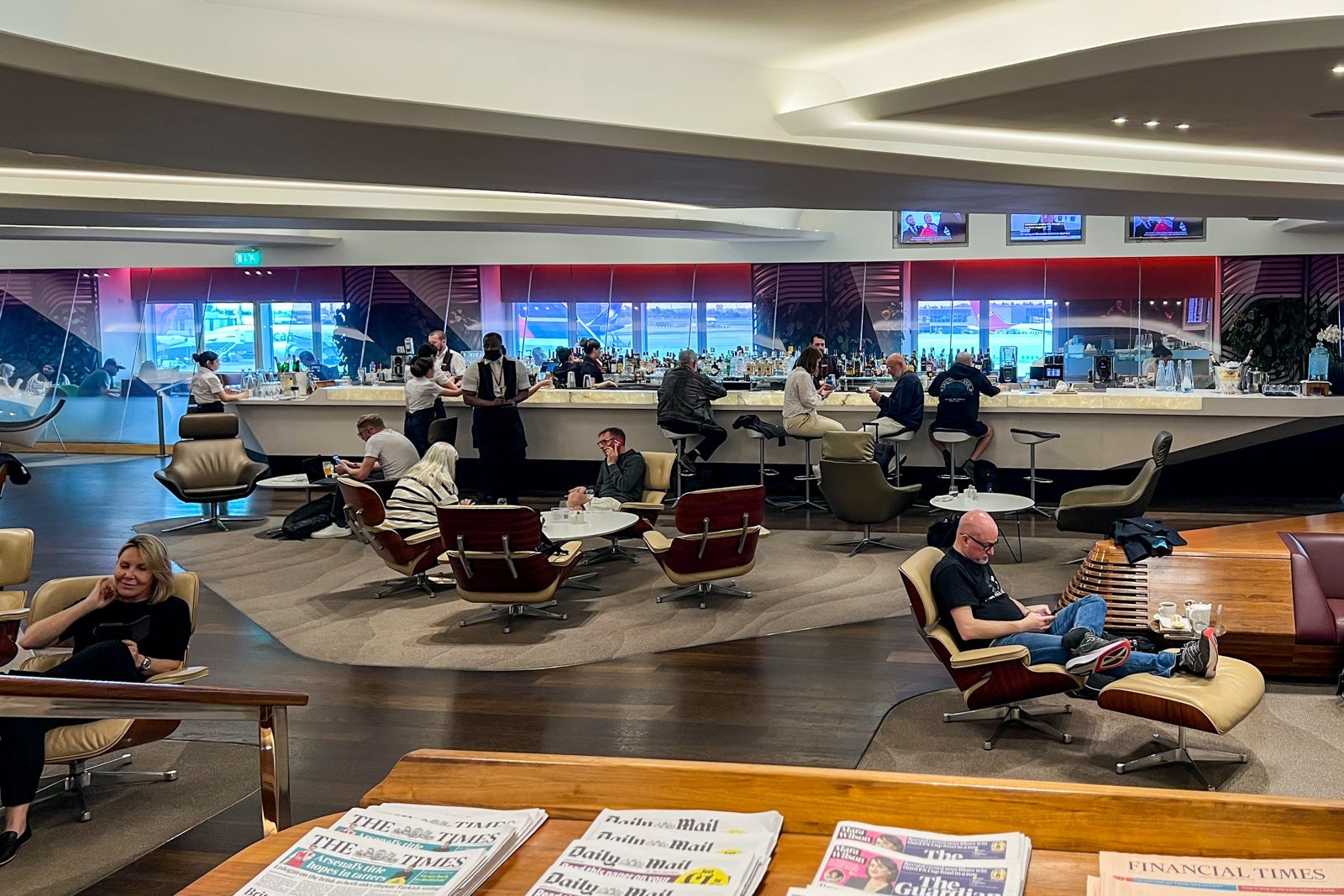 A relatively new revamp of the old First Dining Area, this British Airways lounge welcomes first-class passengers. If you’ve previously visited its immensely popular Concorde Room, you may need to somewhat temper your expectations here — it’s not quite on the same level.