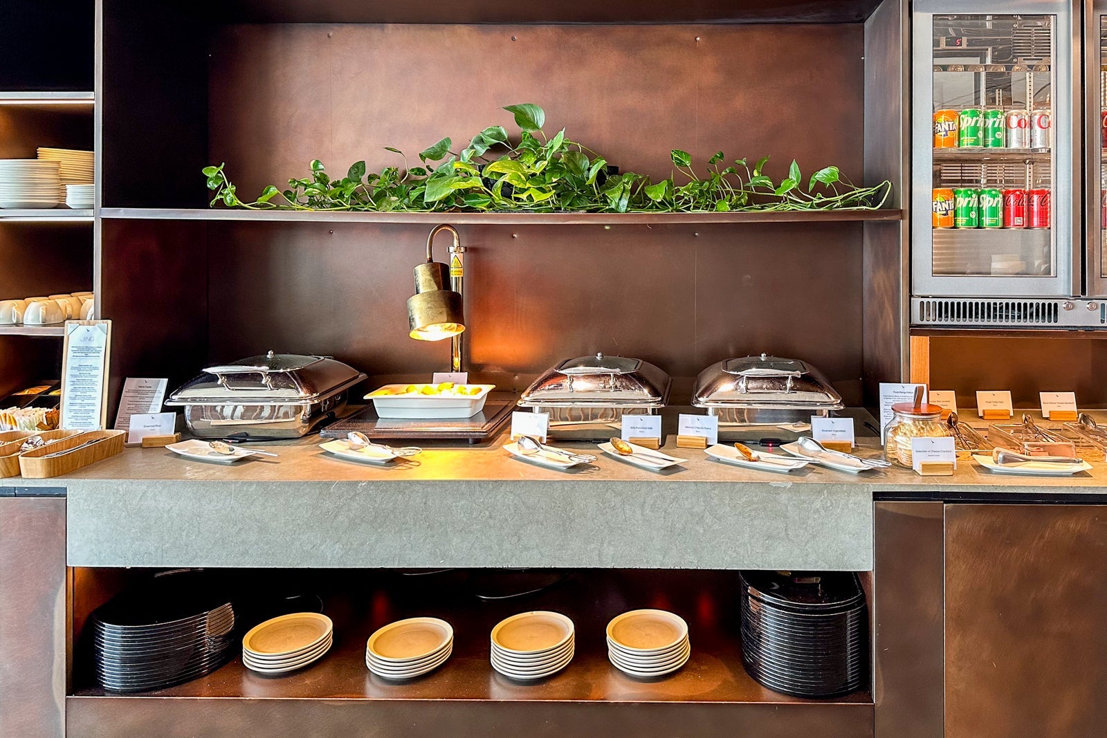 In terms of options, you’ll find the usual array of pastries, cold cuts and quiches. There are also hot buffet dishes, usually consisting of pasta, curry dishes and soups. Your options aren’t quite as tasty as those available in other nearby lounges (including the ones for Cathay Pacific and Qantas), but they’re certainly sufficient.