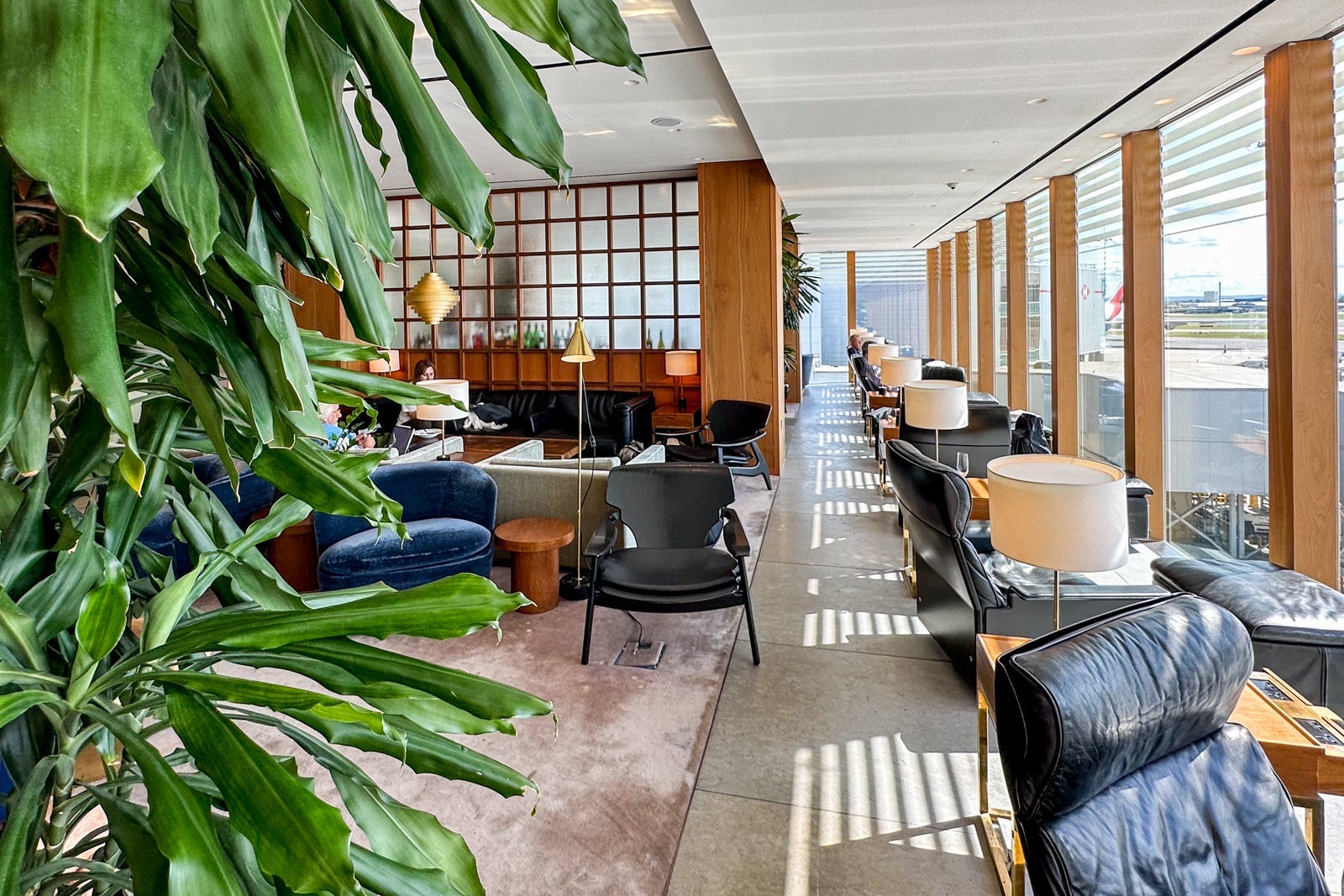 The Cathay Pacific First Class Lounge carries similar stylings to those seen in its business-class offering. However, it’s definitely much brighter, thanks to its large floor-to-ceiling windows, which also offer great runway views.