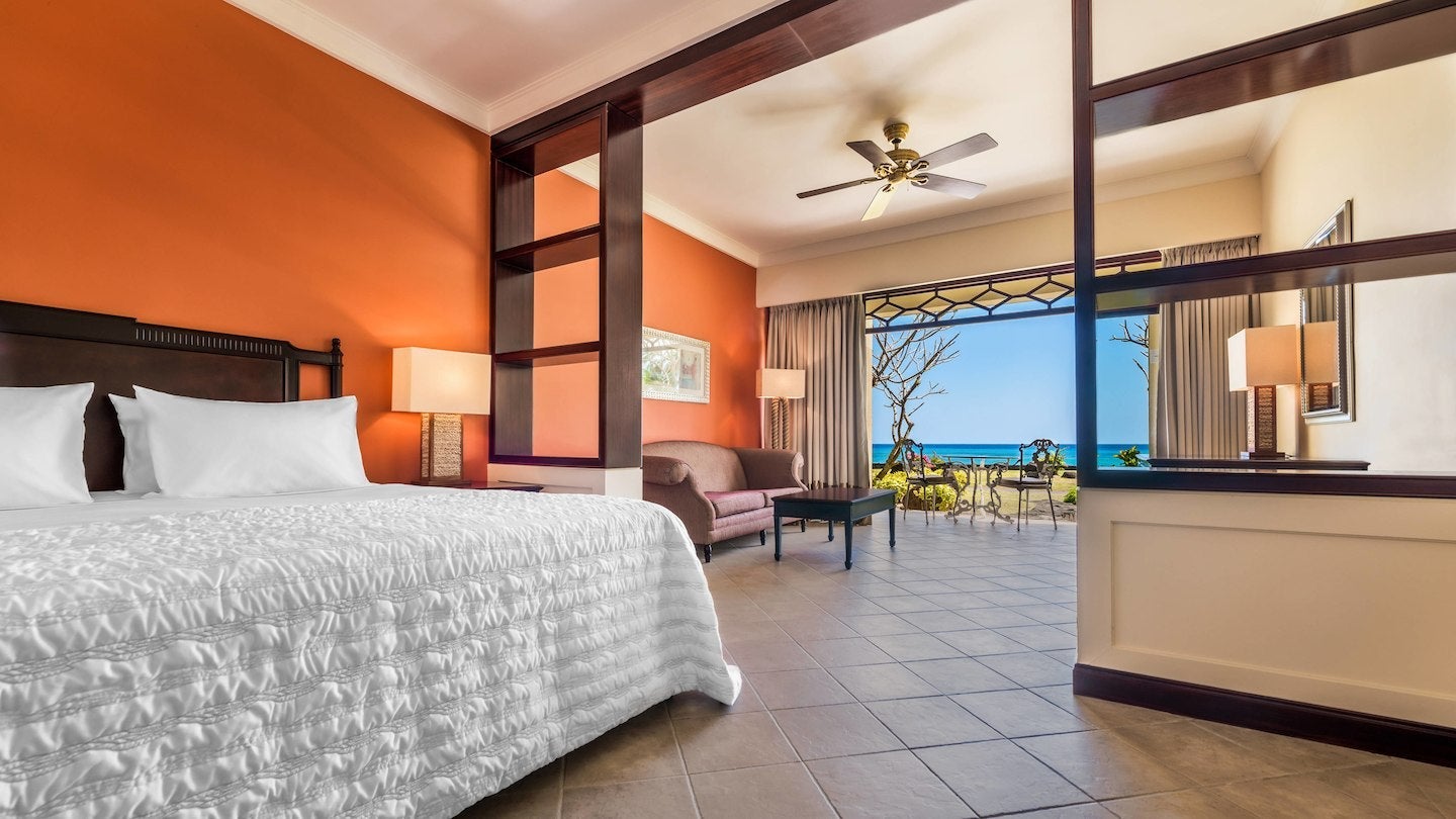 Inviting rooms give off those breezy tropical vibes with a crisp white-and-cream color palette, wooden furnishings, interior stonework and colorful tiled bathrooms. Base rooms start at a generous 345 square feet, and you’re pretty much guaranteed a good night’s sleep on signature Westin Heavenly beds. For something more luxurious, bilevel suites come with private pools and almost 1,000 square feet of space.