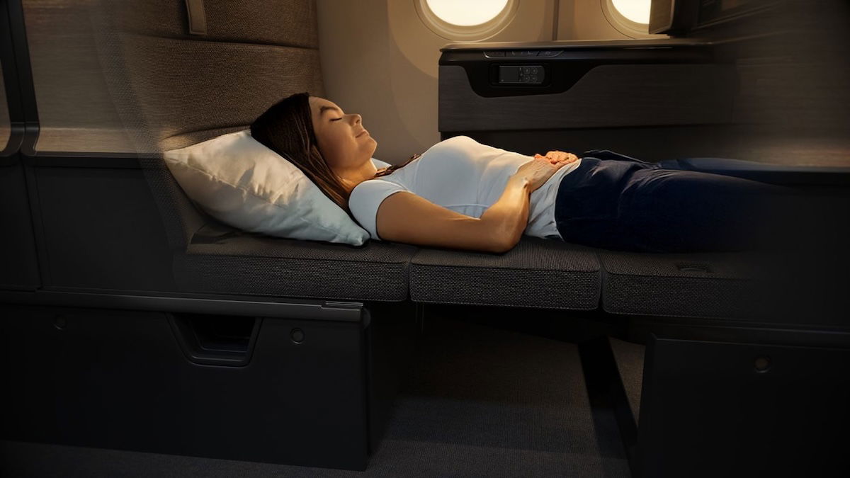 The airline describes the seat as having a pre-reclining function that transforms the backrest into a sofa-like configuration, allowing passengers to relax in a variety of positions, similar to lounging on a living room sofa. When it comes to seat dimensions, the bed has a maximum length of 76.5″, and a maximum width of 41.5″.