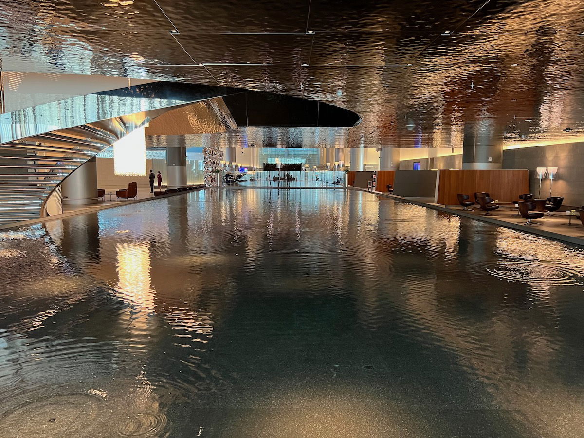 Qatar Airways Al Mourjan Business Lounge Doha water feature