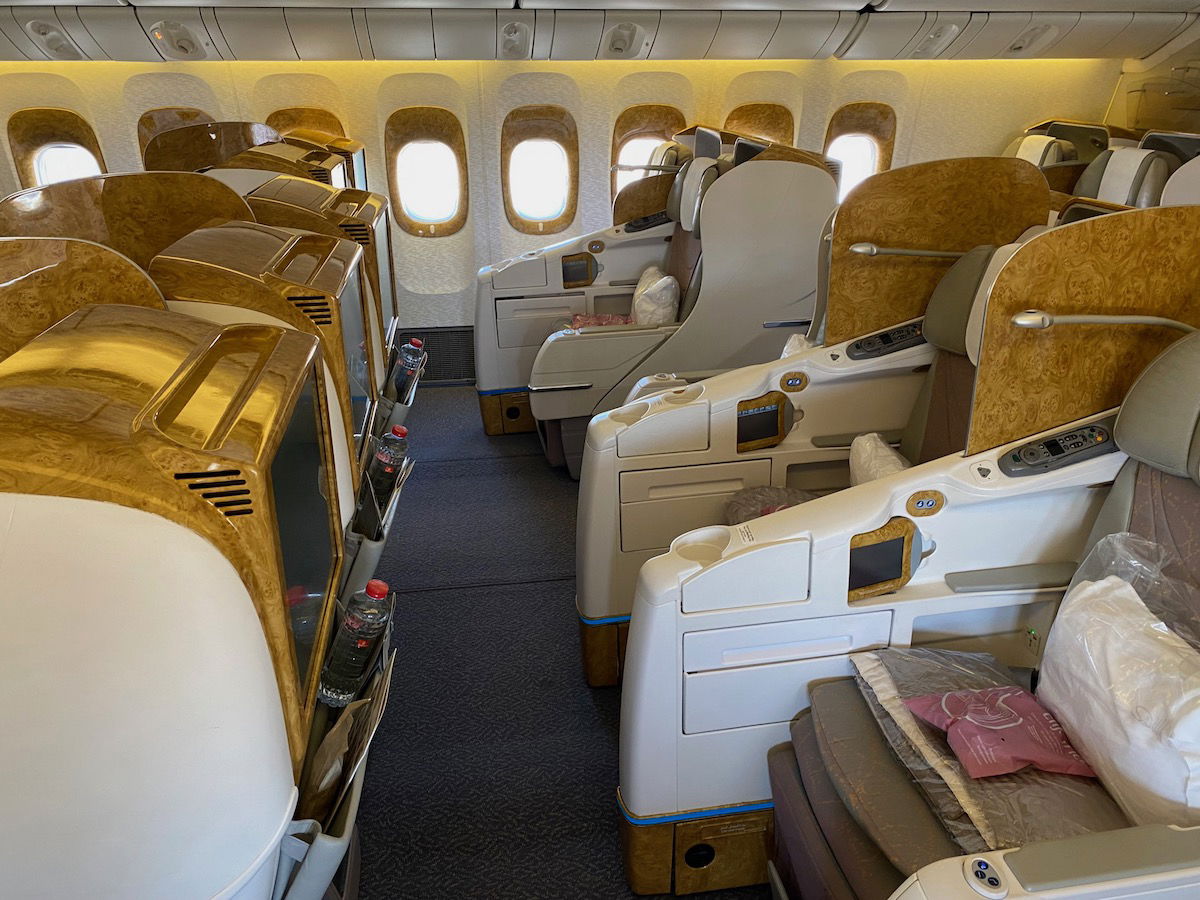 Emirates is known for being one of the best airlines in the world, and has an amazing halo effect from its A380s, including the first class shower suites, the business class bar, etc. However, the carrier’s most common aircraft in service is the 777, and a large percentage of 777-300ERs still have angled business class seats in a 2-3-2 configuration.
