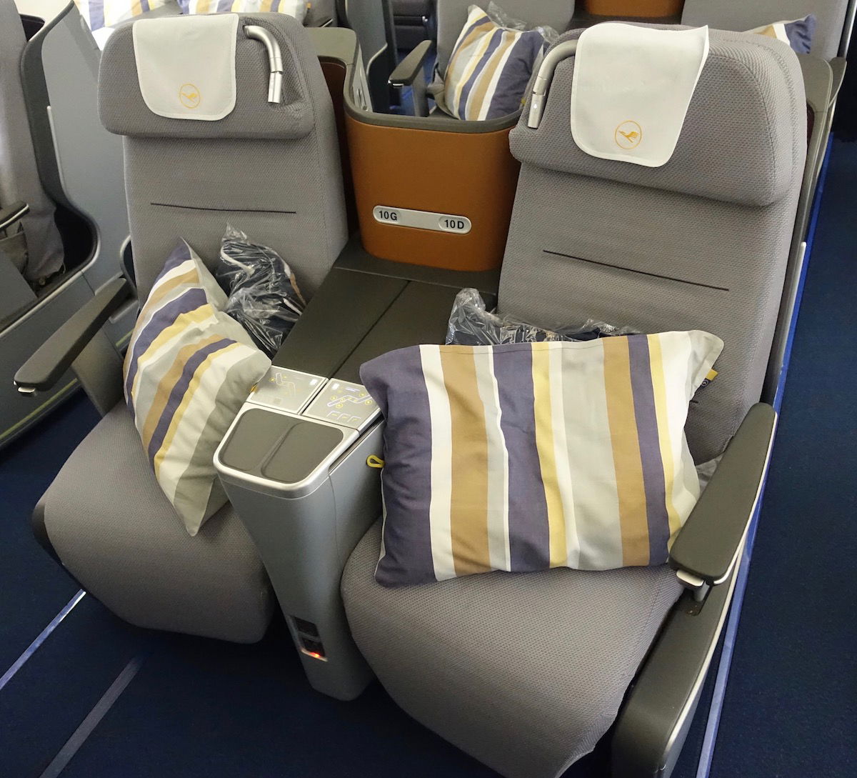 Lufthansa’s old business class is great if you’re traveling with family and a small child, since you can be so close to them, and enjoy the flight together. But for everyone else, this configuration offers very little privacy, and you’ll be playing footsie with your neighbor. What a contrast to compare Air France’s long haul business class fleet to that of Lufthansa in terms of direct aisle access and spaciousness.