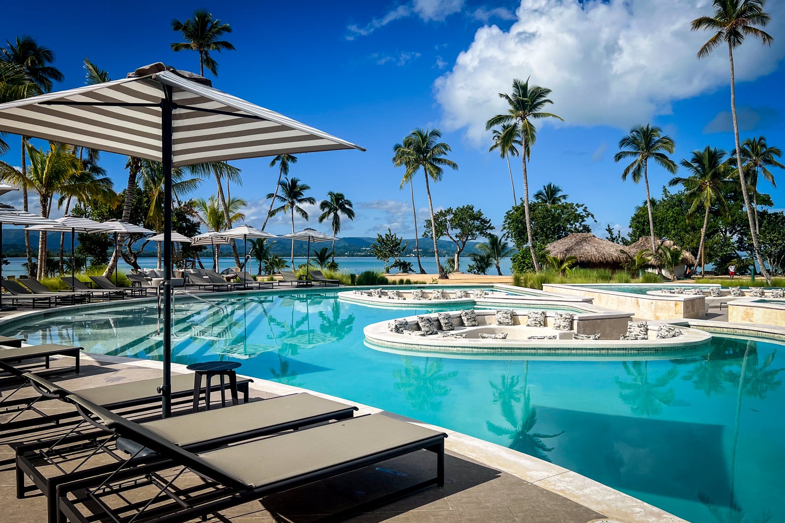 The hotel’s standout amenities include two heated pools with several lounging areas and a whimsical popsicle pager, a private beach with complimentary chairs, a rejuvenating spa and daily fitness classes for guests. For foodies, the culinary program led by José Andrés stretches across three restaurants, with a fourth opening soon, and comes complete with theatrical cocktails and Mediterranean-Latin flavors.