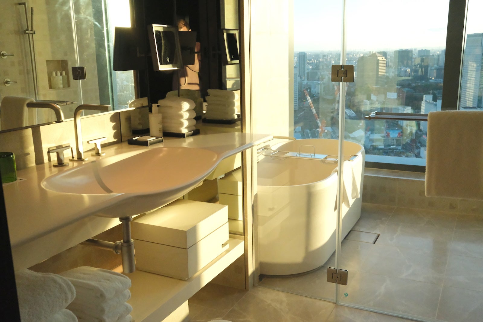 Rooms have all the up-to-the-minute amenities, including artificial intelligence-powered assistant boxes that you can use to control things like the lights and temperature, though the real piece de resistance is the deep marble soaking tub, just beckoning you to relax.