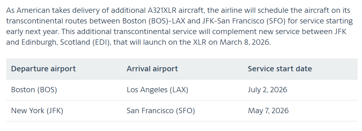 • Expansion of American Airlines Airbus A321XLR service:
