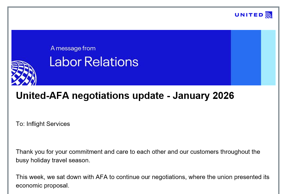 Clearly from this message there’s not a new tentative agreement imminent. The message reads as proposal exchange and positioning, not joint problem-solving at the finish line. The union presented economics. United says it’s too expensive and countered, and they’re trying to manage employee reaction. It’s designed to (1) box in AFA’s economics as unrealistic, (2) pre-sell offsets, and (3) soften internal resistance to the two likely targets—reserve structure changes and PBS.