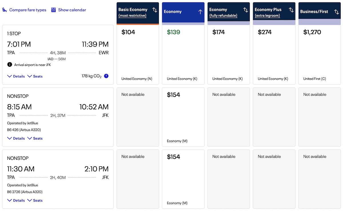 For now, the airlines are only selling tickets for travel exclusively on one airline, meaning you won’t find mixed tickets on United and JetBlue. However, the functionality to book a single itinerary that includes flights operated by both airlines is expected to be offered in the future.