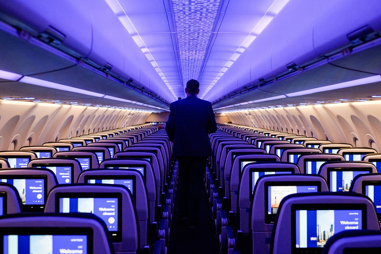 Interior of Airbus SE A321 Neo aircraft operated by United Airlines