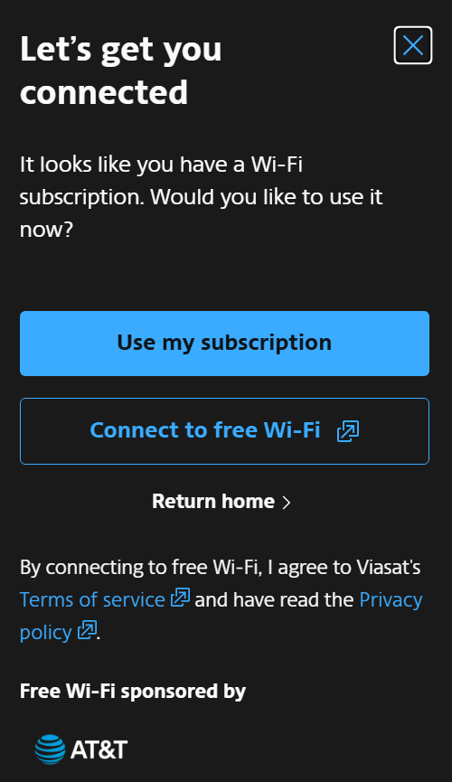 When I logged in I was asked whether I wanted to use my subscription or the free wifi. I’m told the only difference is whether they make you run through ads before getting online (i.e. pay doesn’t get you bandwidth priority).