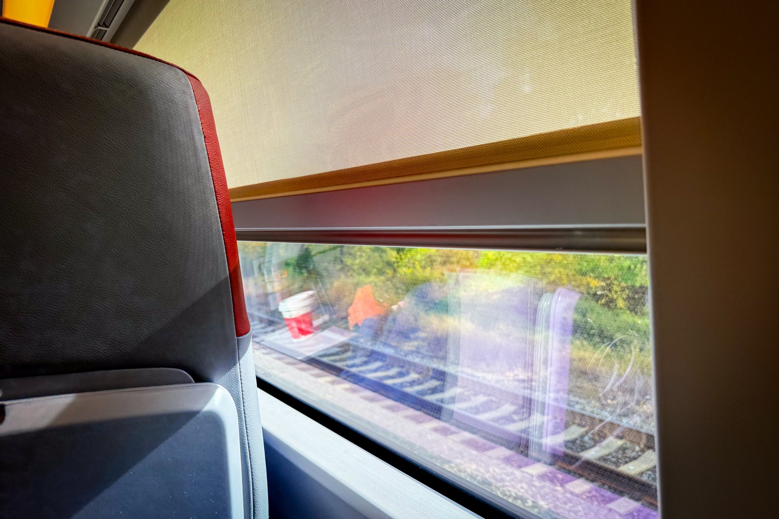 The ergonomic seats were fine. They are still a bit firm, but I imagine they will become more comfortable as they wear in. I was in seat 1A in the very rear of the train car. It’s nice to have modern finishes, and the pops of red add a nice touch in the first-class car.