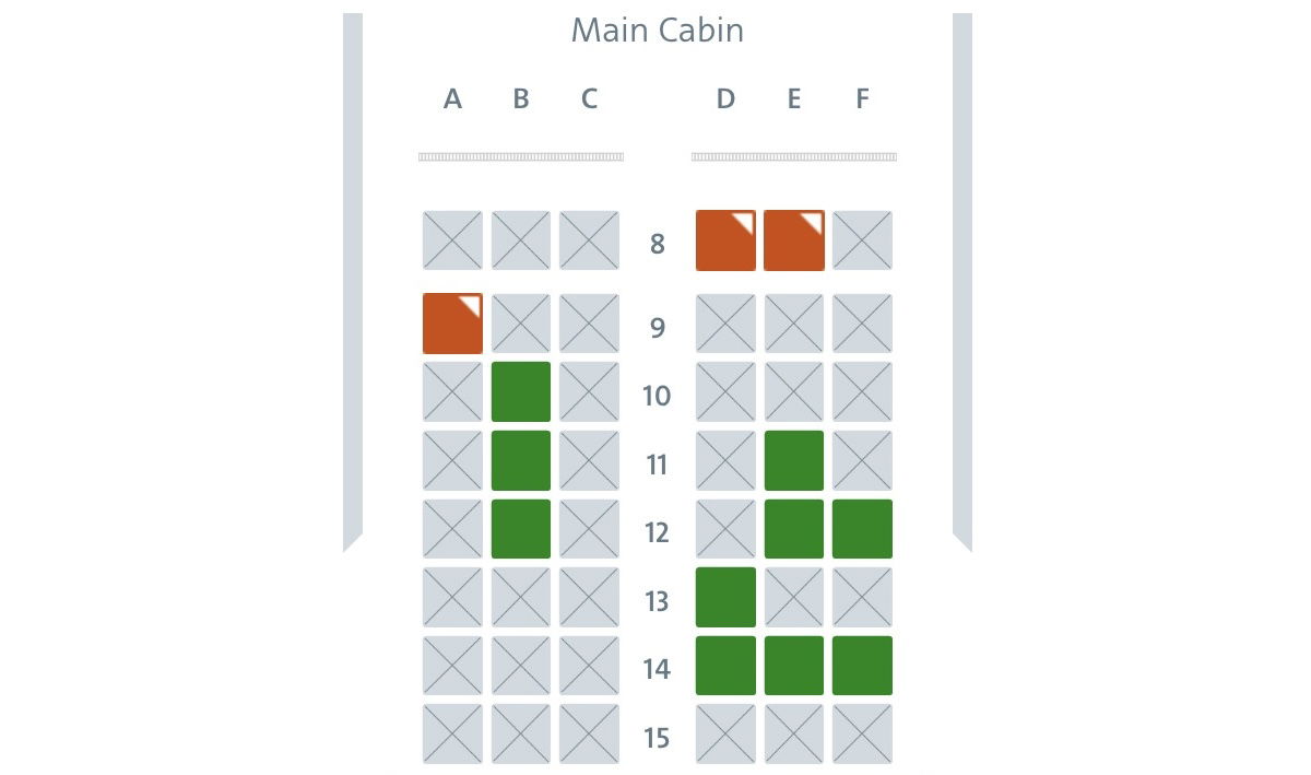 - Airbus A321 & A321neo — seats 8D, 8E, and 8F