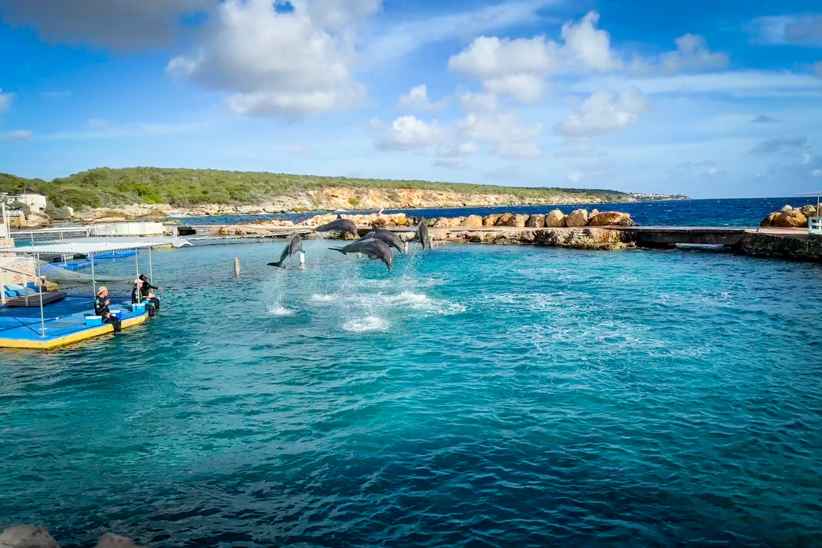 At the open-air Curaçao Sea Aquarium, we got up close with fish, flamingos, sea turtles, lobsters and more, but the highlight was the daily dolphin training demonstration. We were in awe of their abilities, the bond between the dolphins and their trainers, and the open ocean habitat.